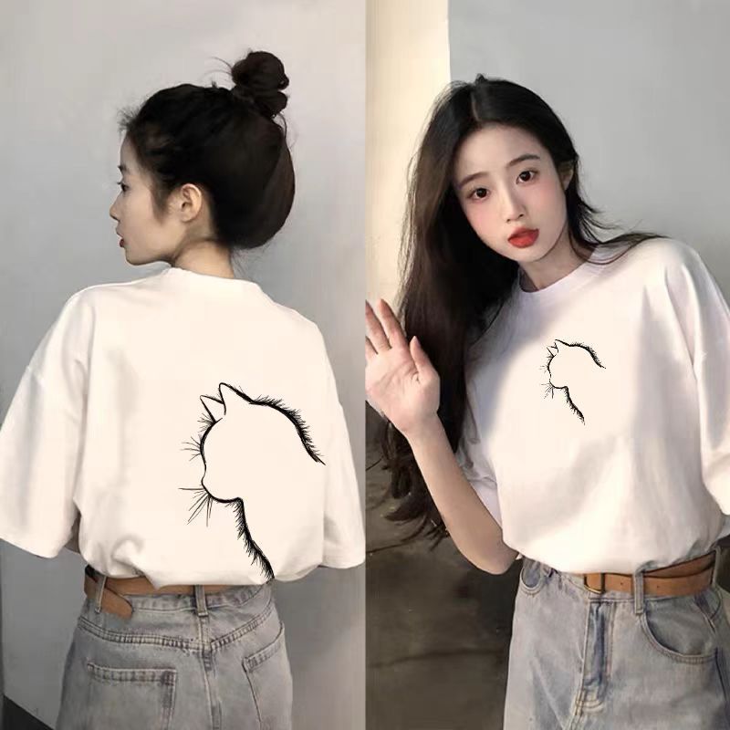 블랙 반소매 코튼 티셔츠 여성 2025 년 여름 새로운 폭발 느슨한 대형 반소매 탑 티셔츠