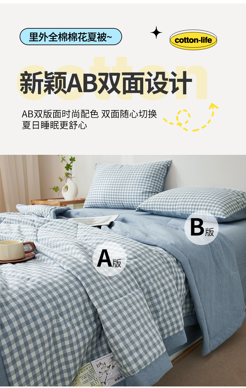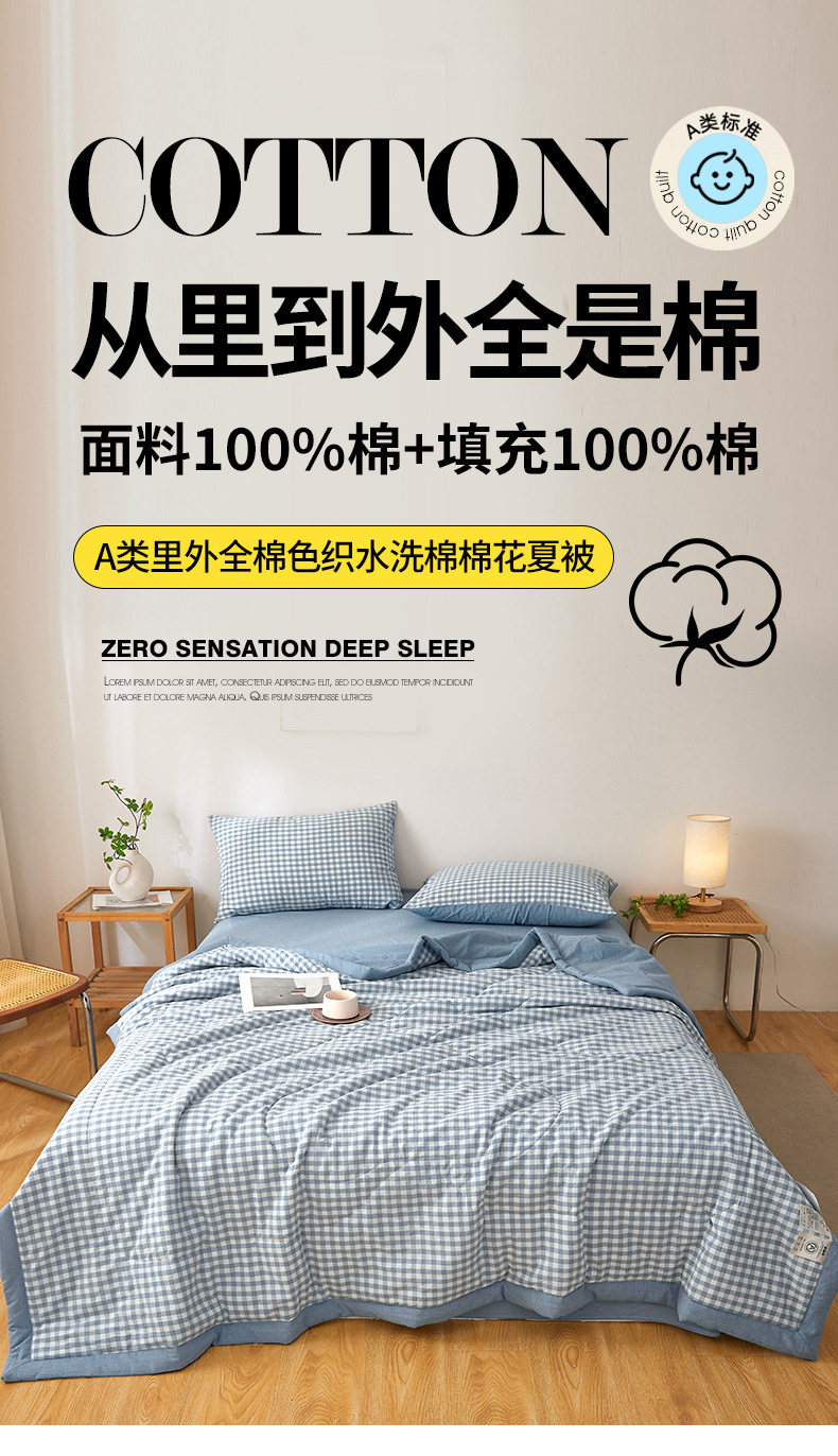 클래스 A 엄마와 유아 급의 순면 여름 이불 간단한 인쇄되지 않은 격자 무늬 여름 에어컨 이불 신강 면 기계 세탁 가능한 여름 이불스토어 가기