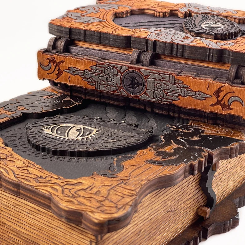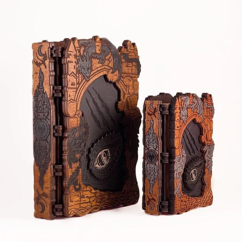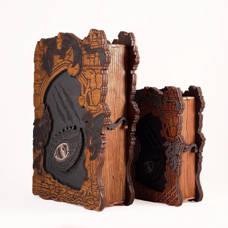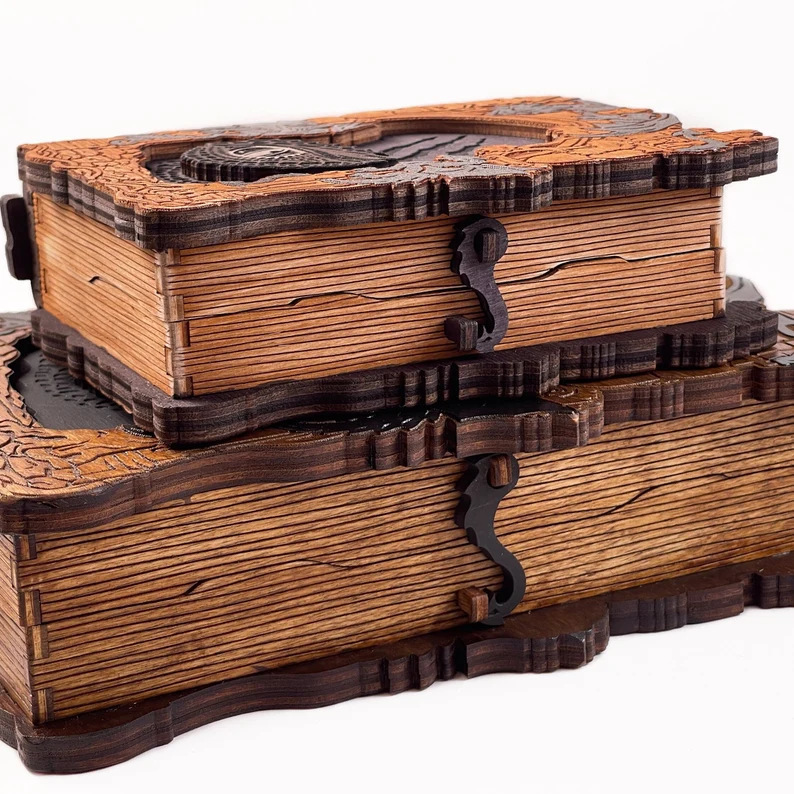 국경 간 새로운 독립 역 폭발 DIY 나무 마술 책 선물 상자 나무 공예 용 패턴 나무 상자 재고
