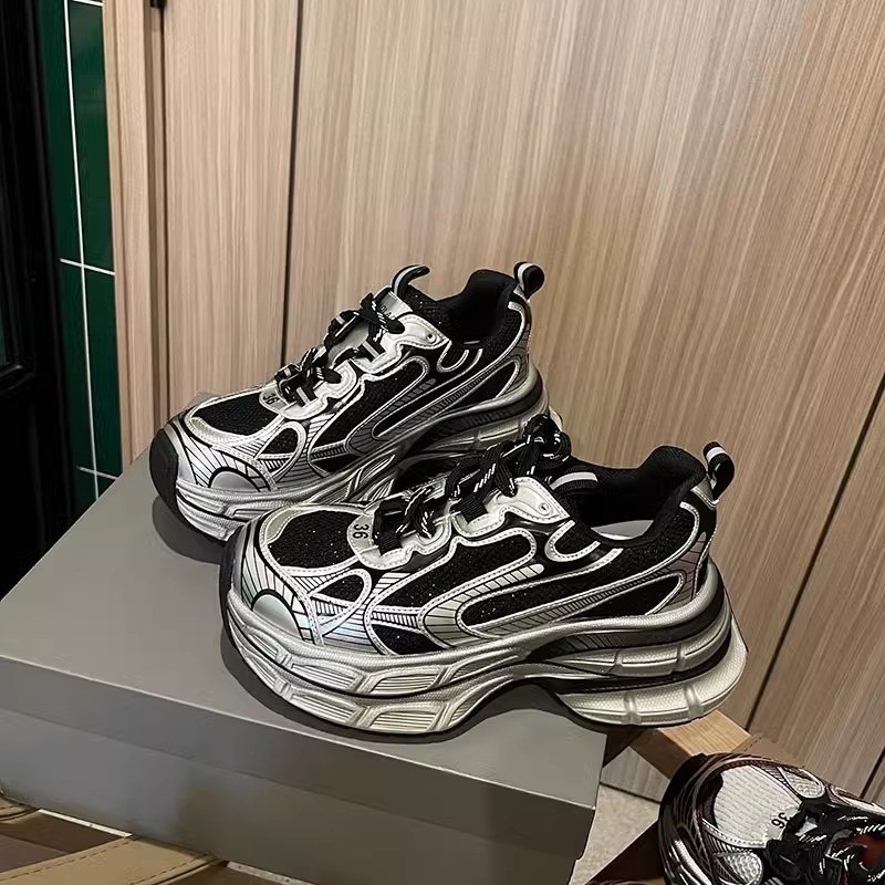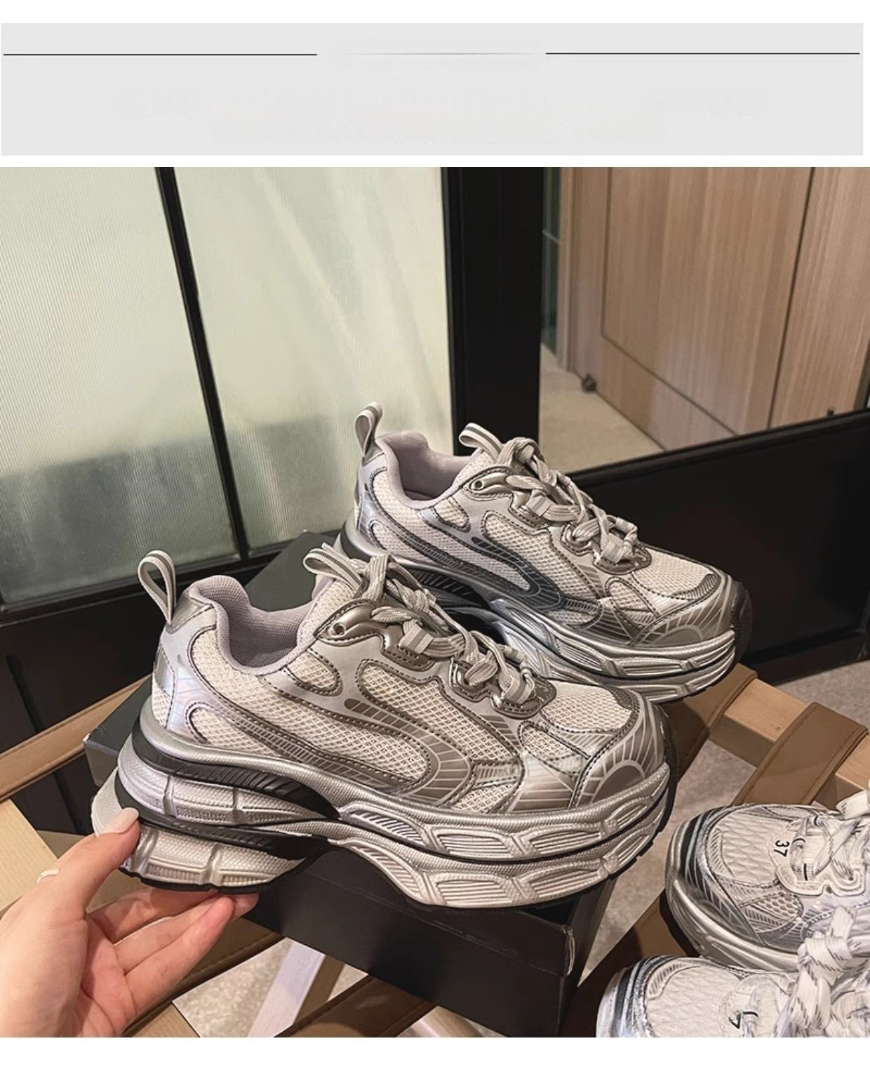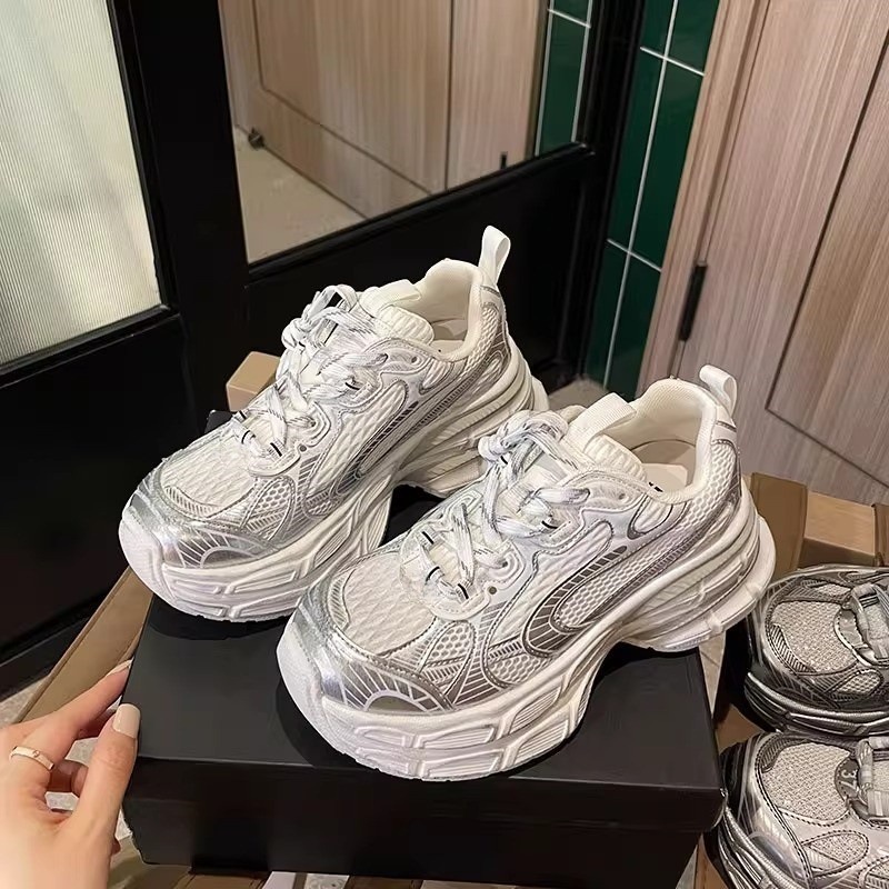2025 새로운 두꺼운 바닥 플랫폼 더블 레이어 파리 토레 신발 여성 작은 캐주얼 신발 운동화 실버 여성 신발스토어 가기