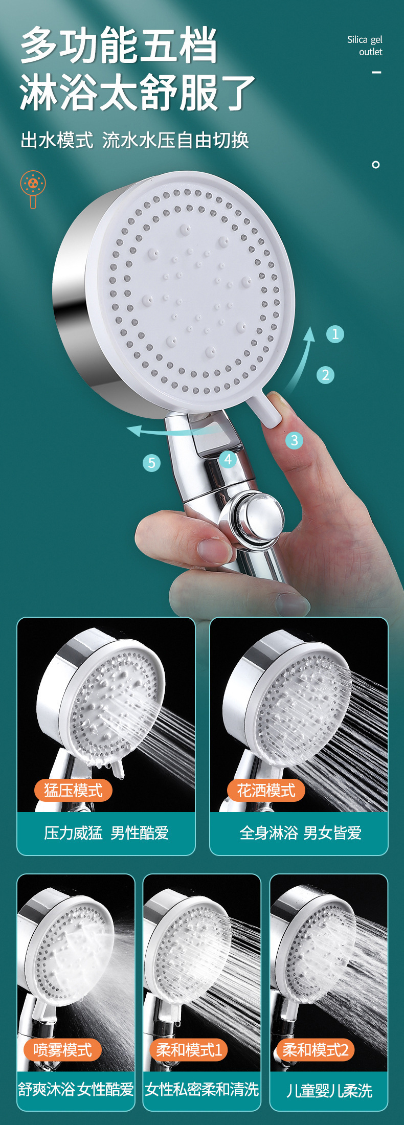 슈퍼차저 샤워헤드, 휴대용 필터 샤워베이스, 스테인리스 필터, 레인마이너스 이온 5단 샤워헤드