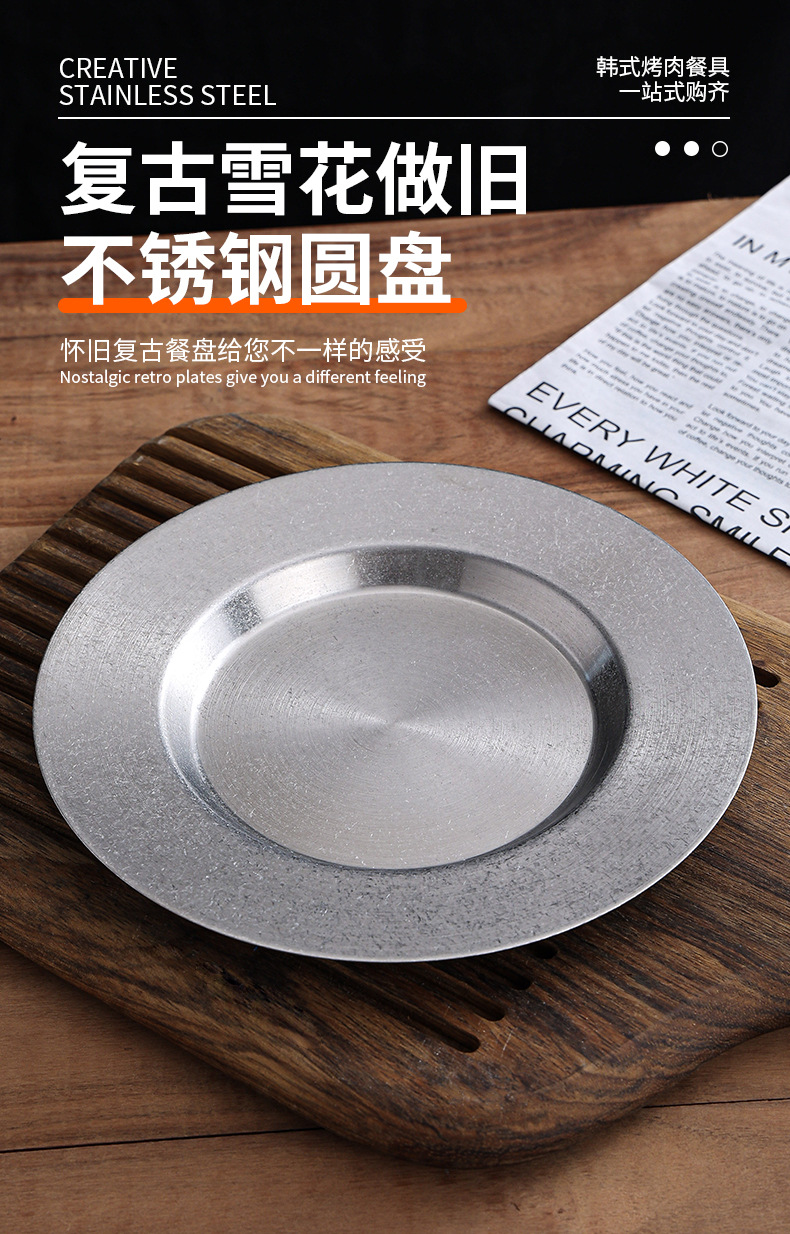 레트로 스테인레스 스틸 파스타 접시, 오래된 스테이크 접시, 호텔 과일 및 야채 접시, 상업용 원형 접시, 맞춤형 로고스토어 가기