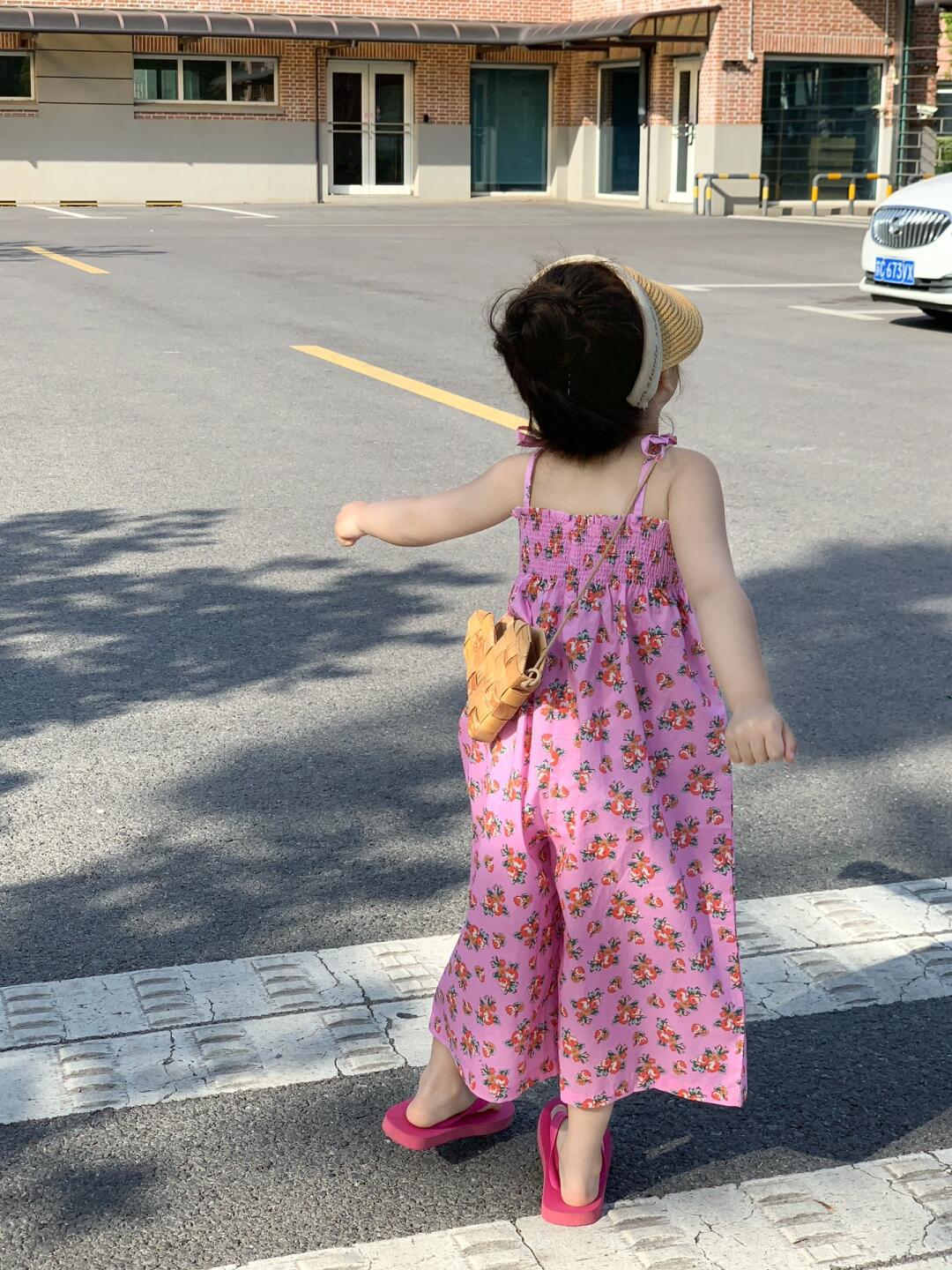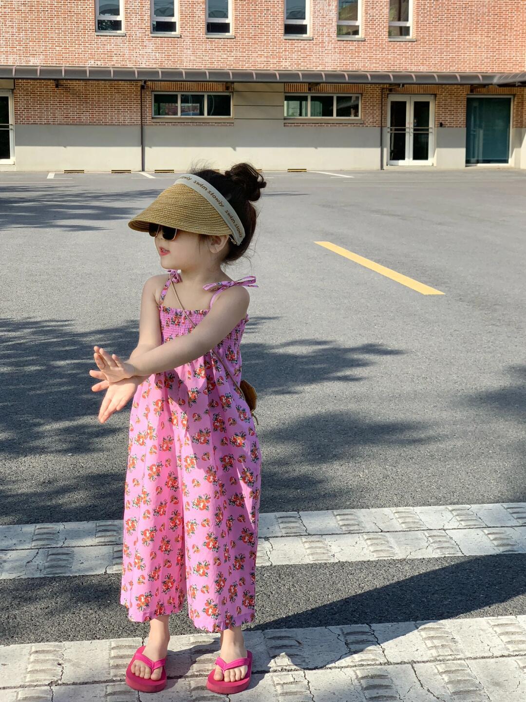 2025 년 여름 소녀 한국 스타일 재단 불 텐돈 레이스 느슨한 스트랩 넓은 다리 팬츠와 꽃 슬링 바지