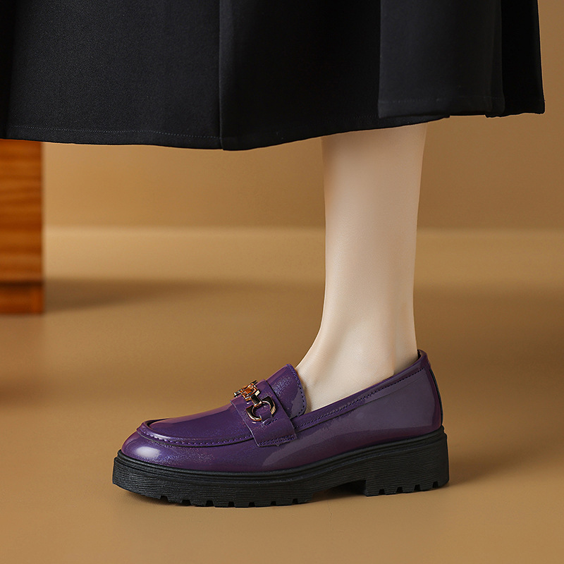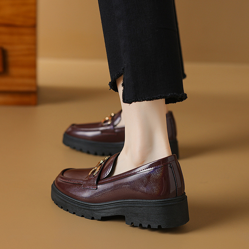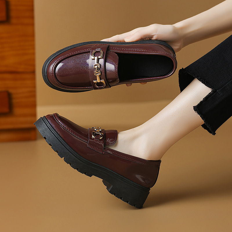 여성을위한 크로스 보더 대형 영국 스타일 작은 가죽 신발 2025 봄과 가을 여성을위한 새로운 둥근 발가락 슬립 온 두꺼운 밑창 플랫폼 로퍼스토어 가기