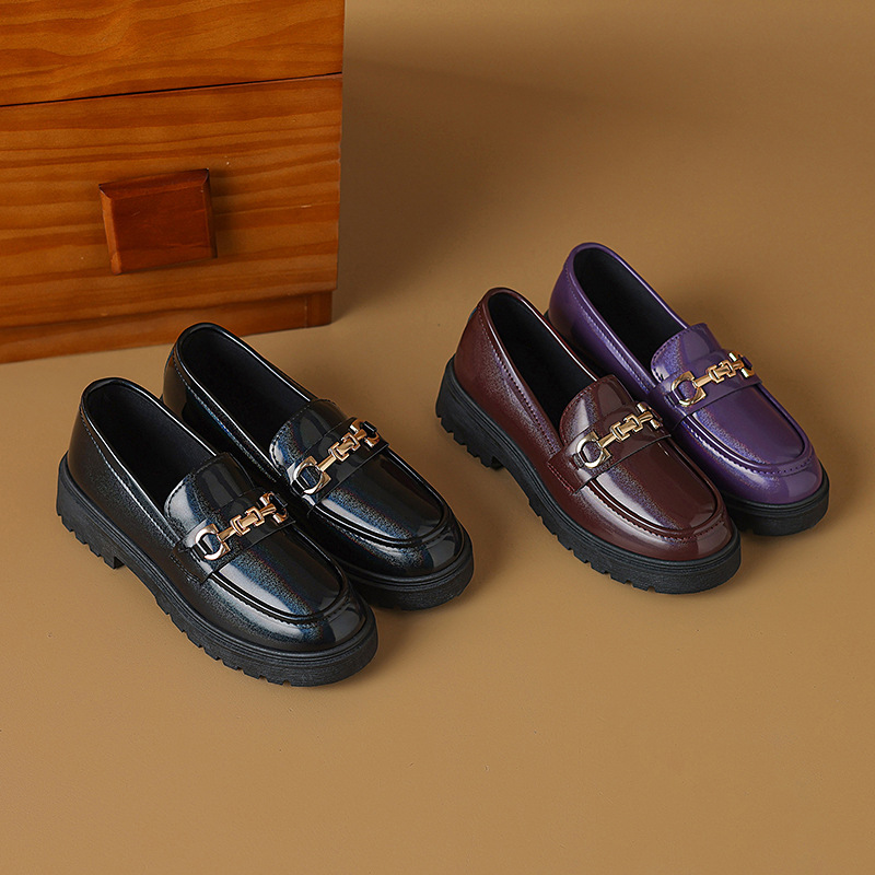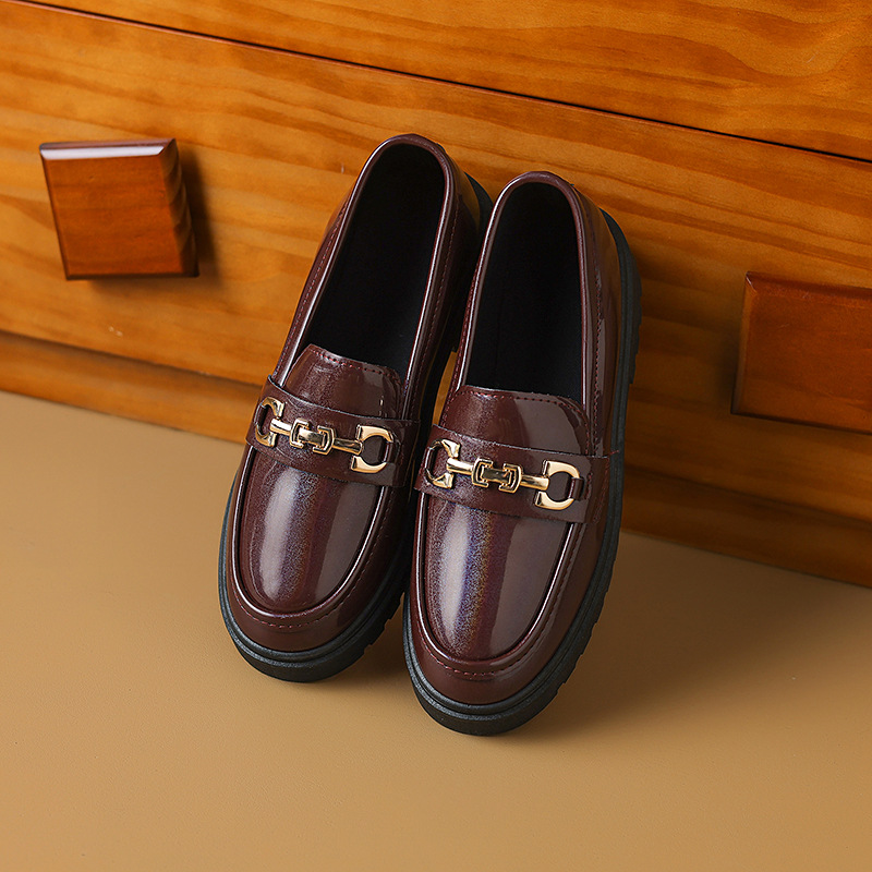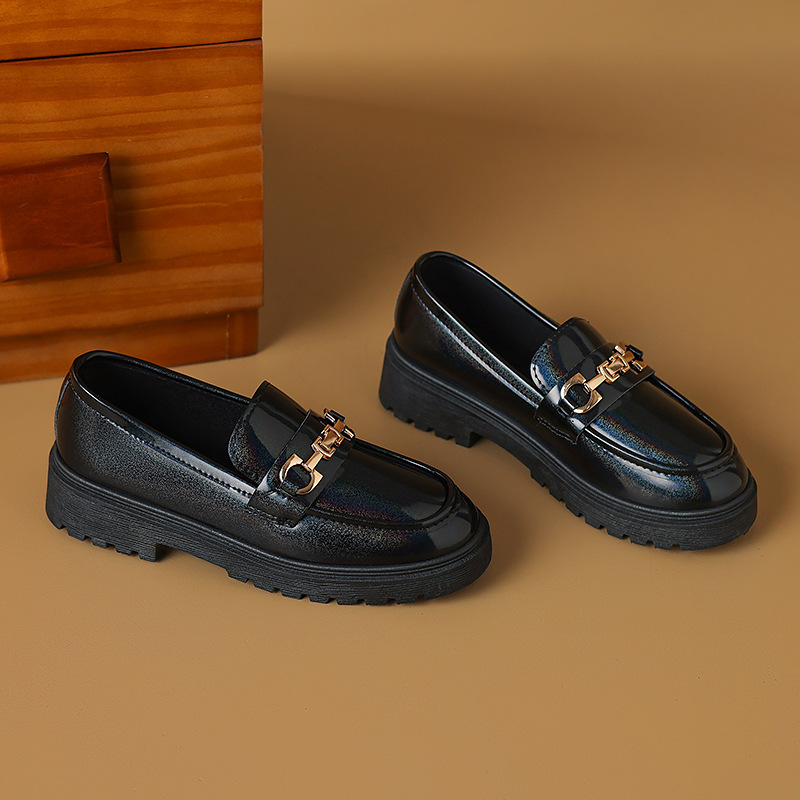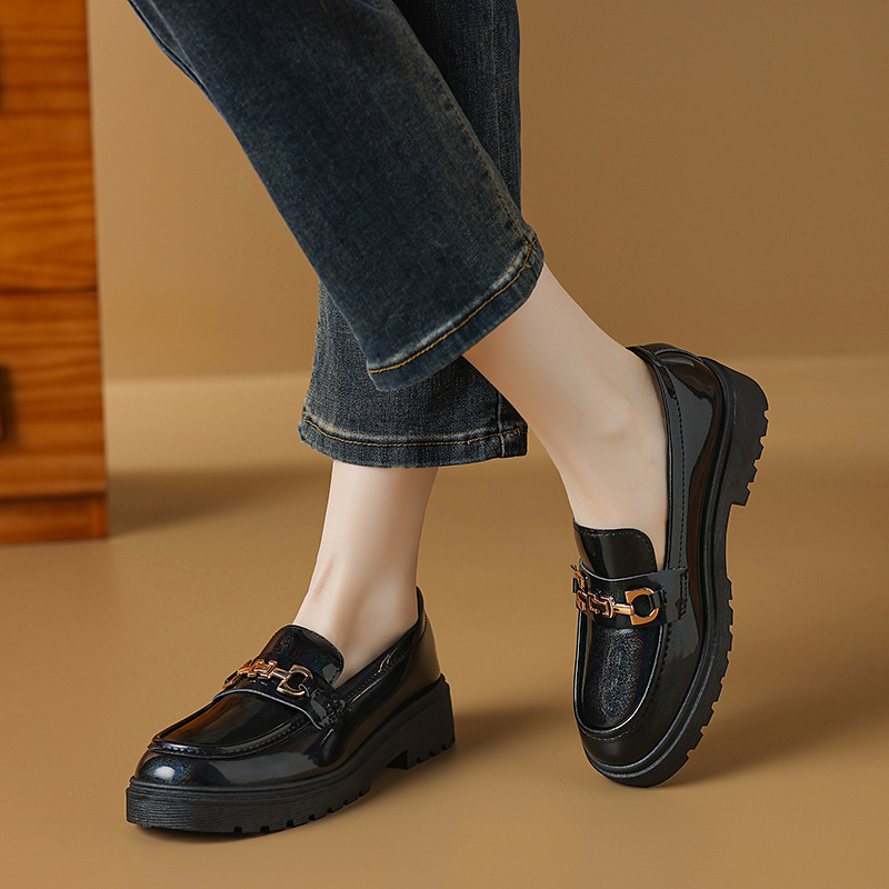 여성을위한 크로스 보더 대형 영국 스타일 작은 가죽 신발 2025 봄과 가을 여성을위한 새로운 둥근 발가락 슬립 온 두꺼운 밑창 플랫폼 로퍼