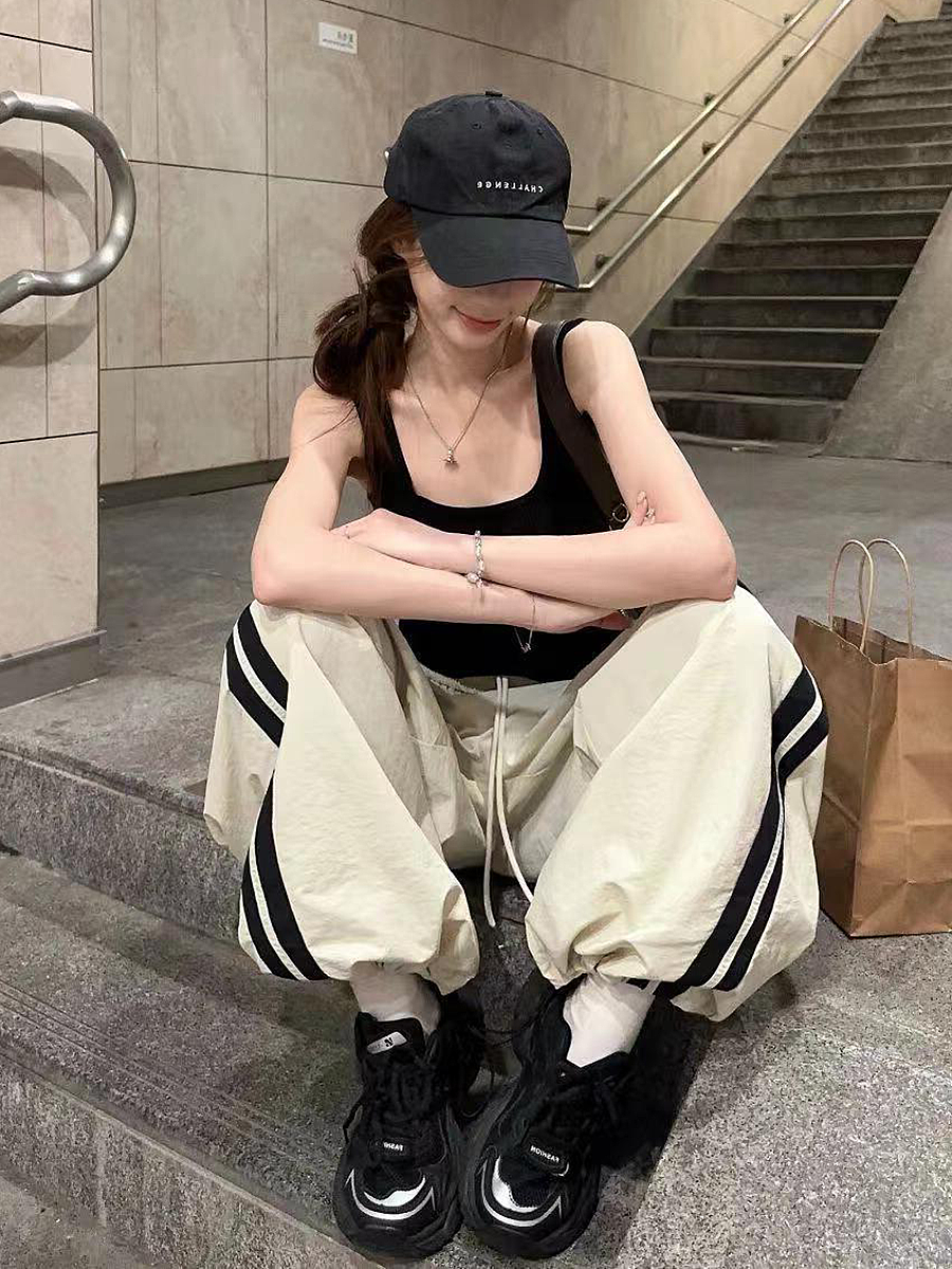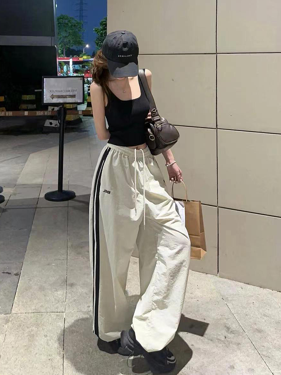 미국 스타일 뜨거운 소녀 닫는 바지 여성 러쉬 바지 디자인 센스 느슨한 바지 캐주얼 슬리밍 바지 작은 스포츠 바지스토어 가기