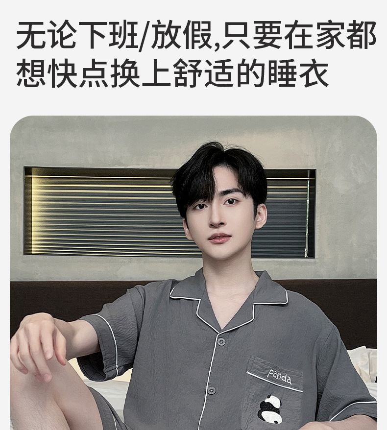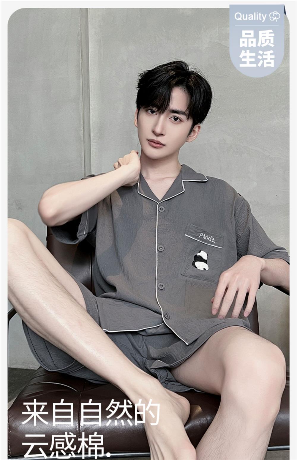 2025 뉴 클라우드 코튼 파자마 남자 여름 반팔 반바지 얇은 여름 남자 남자 홈 의류 세트스토어 가기