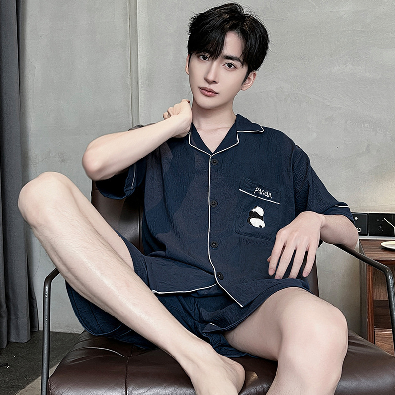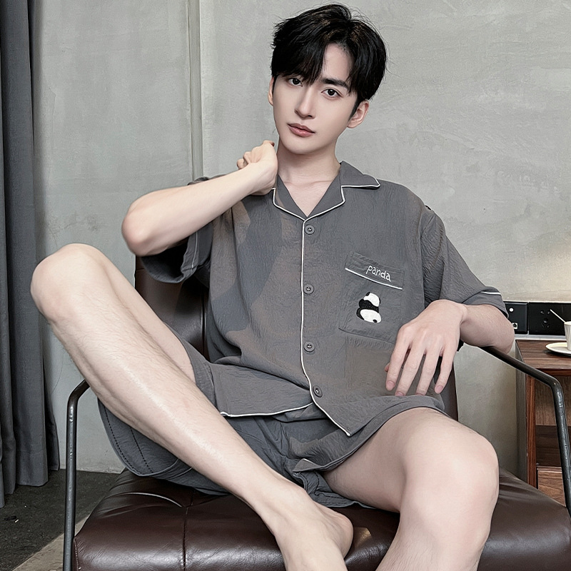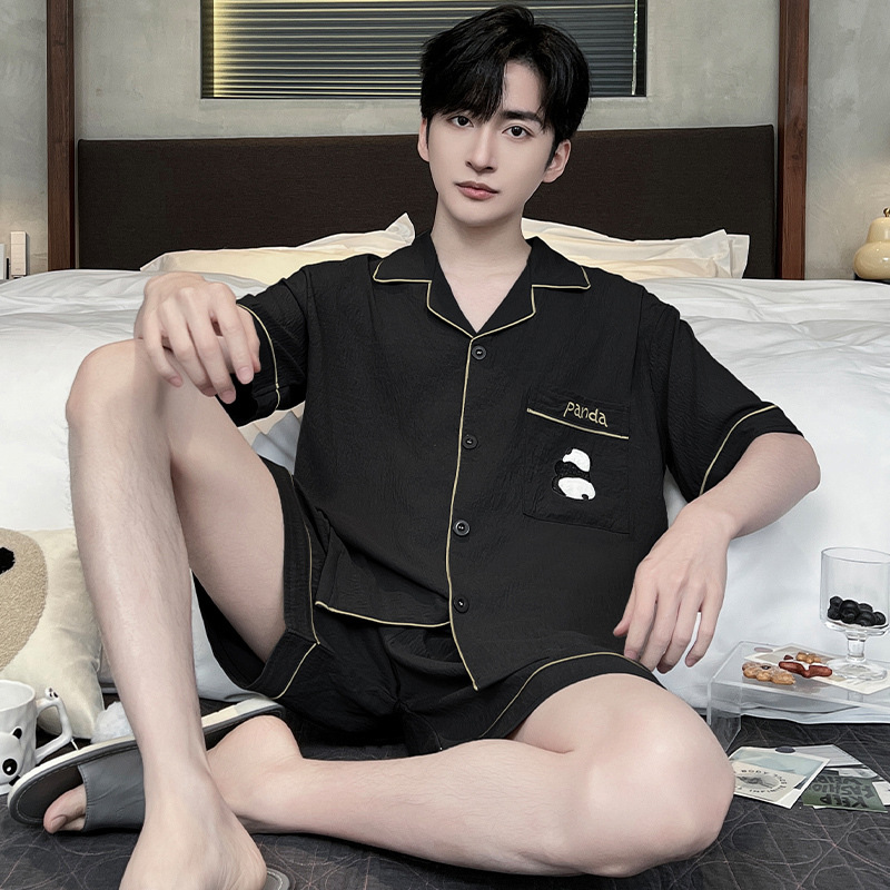 2025 뉴 클라우드 코튼 파자마 남자 여름 반팔 반바지 얇은 여름 남자 남자 홈 의류 세트