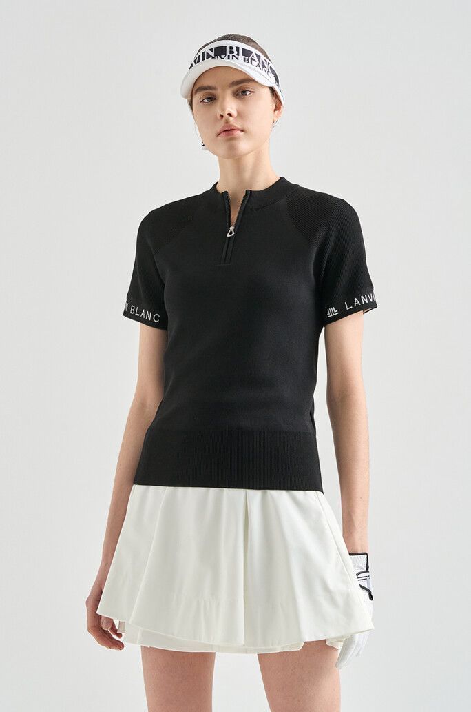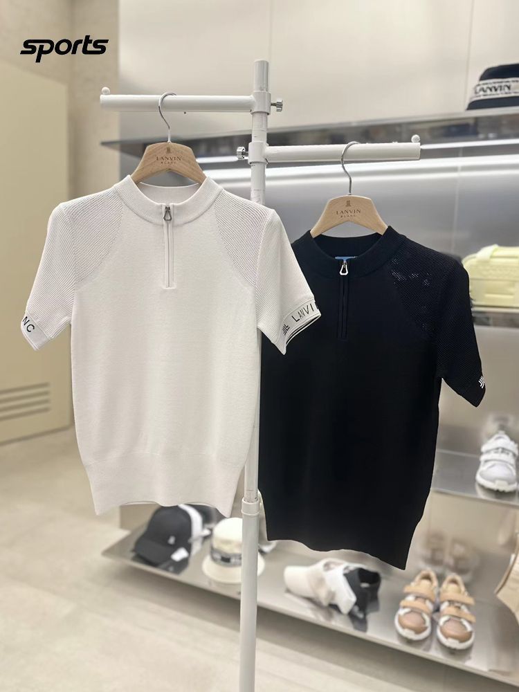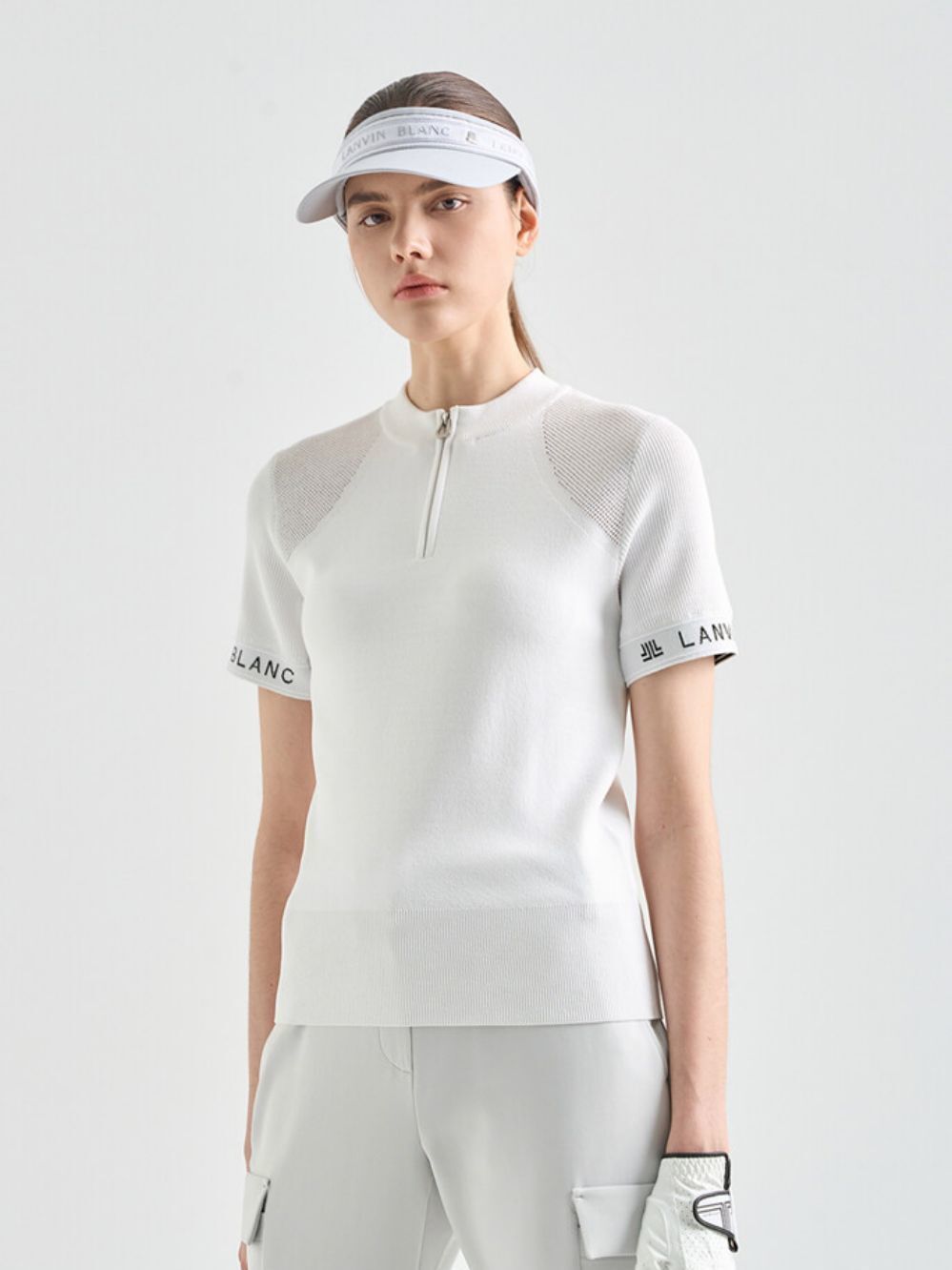 24 봄 여름 신작 오리지널 싱글 골프 의류 여성 골프 유니폼 골프 로고 하프 지퍼 하프 슬리브 니트 탑 트렌디스토어 가기