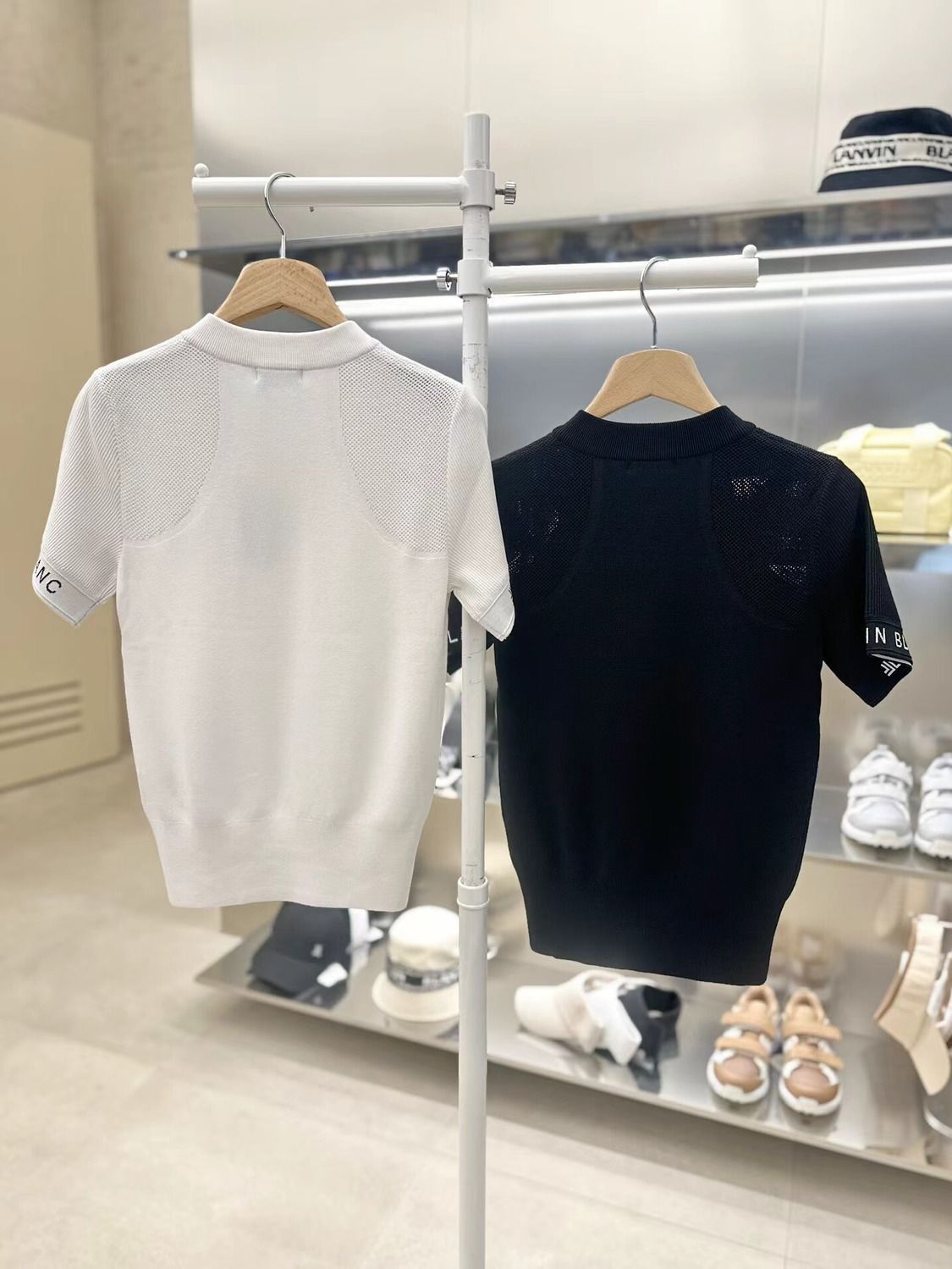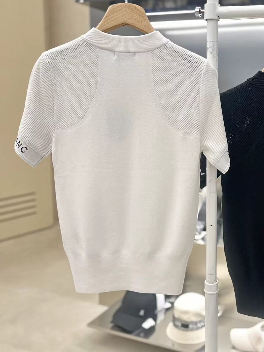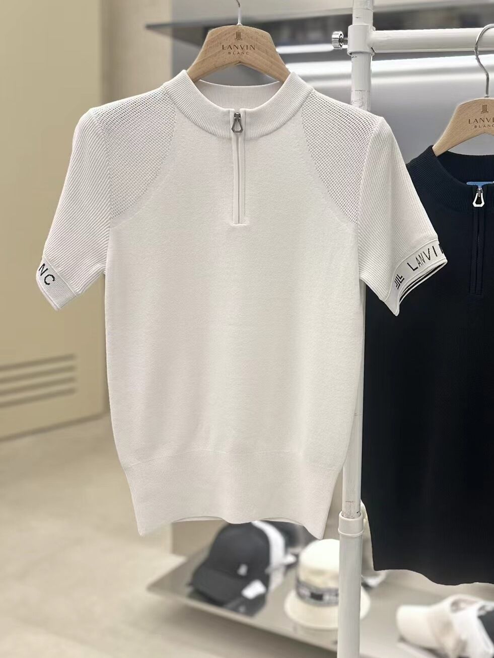24 봄 여름 신작 오리지널 싱글 골프 의류 여성 골프 유니폼 골프 로고 하프 지퍼 하프 슬리브 니트 탑 트렌디