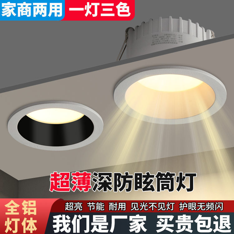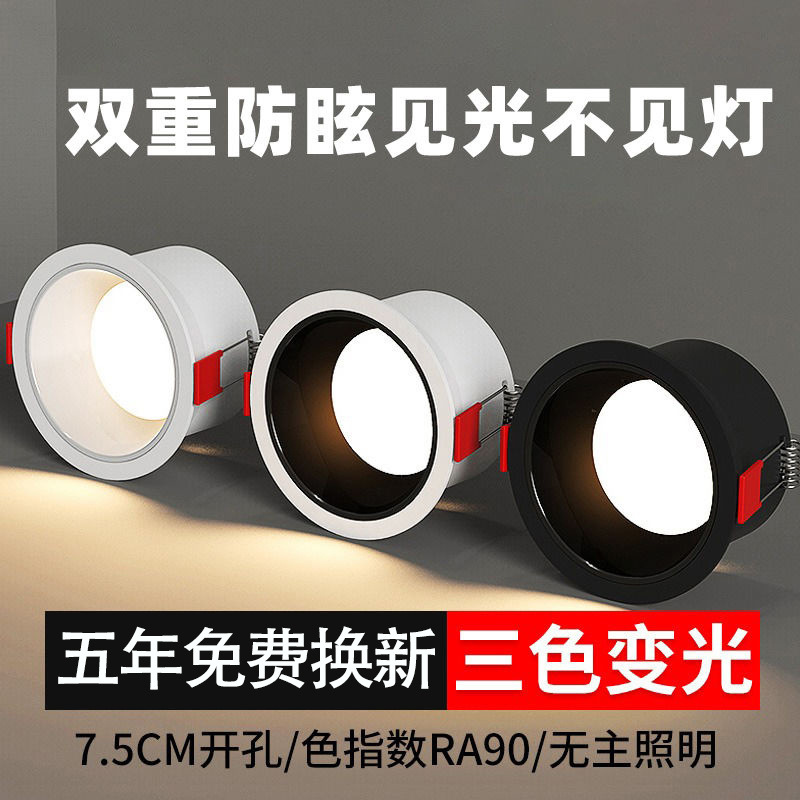 다운 라이트 LED 내장형 메인 램프 없음 침실 깊은 컵 방지 거실 천장 구멍 7.5cm 가정용 3색 조광