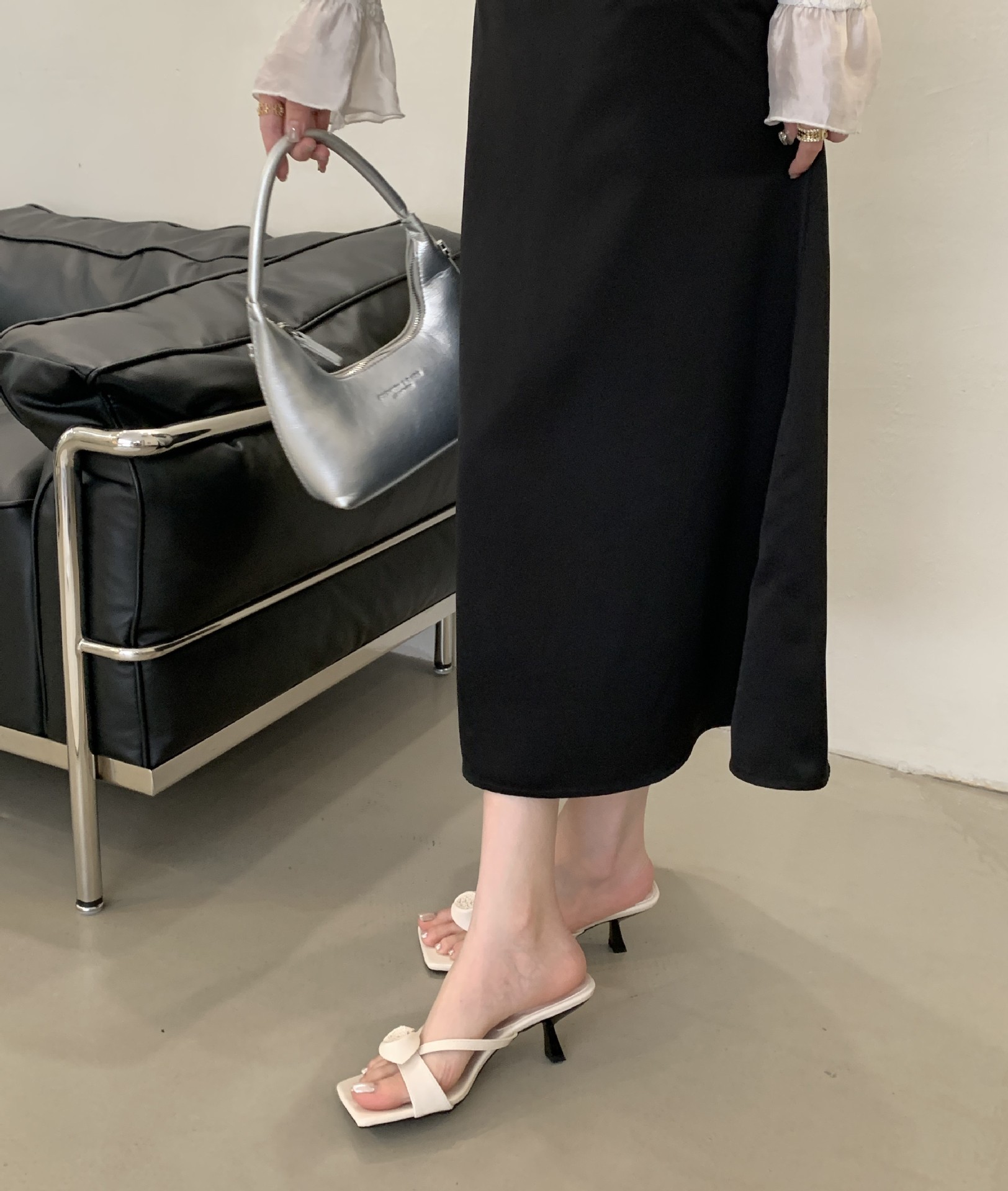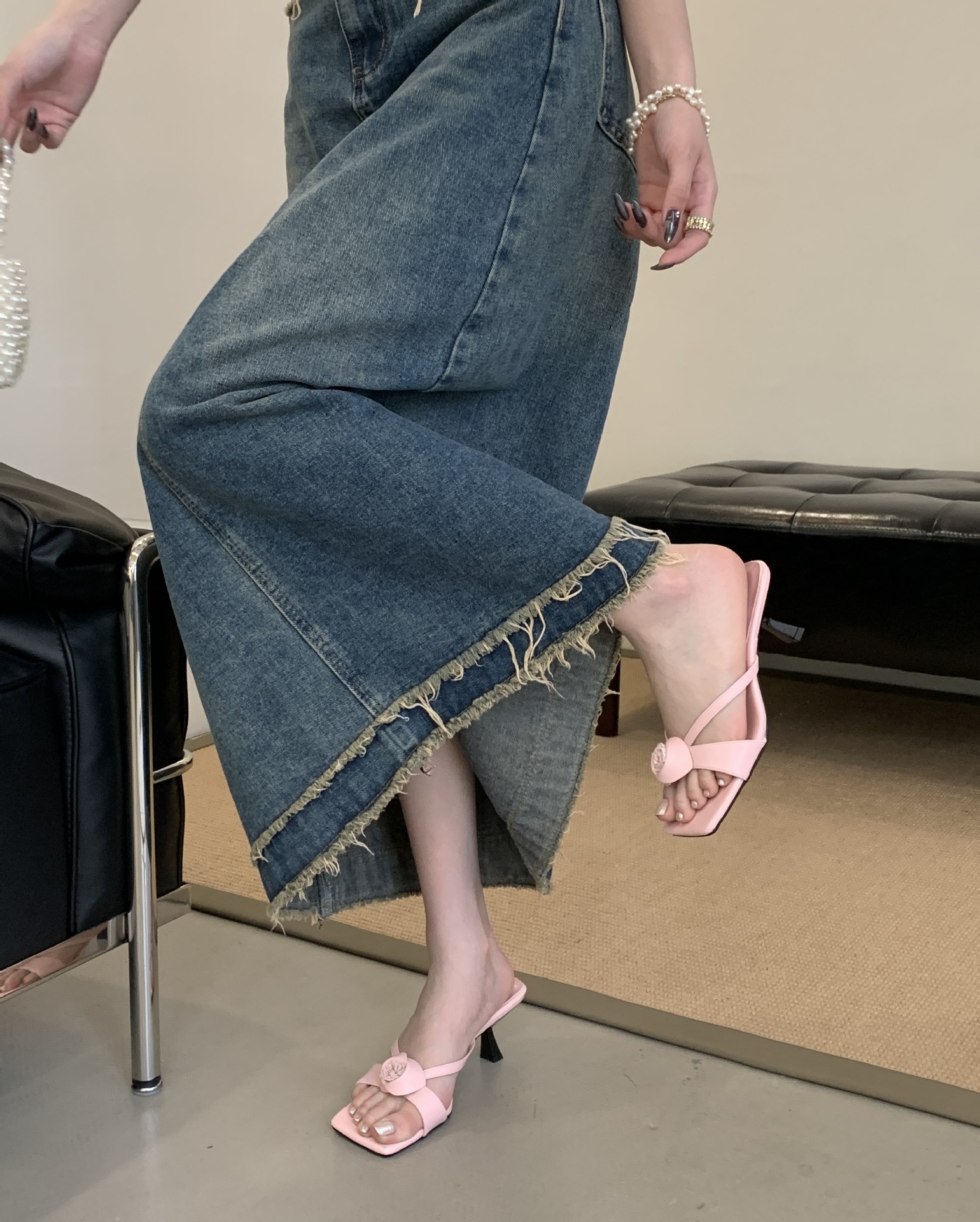 2025년 신상 프렌치 페어리 스타일 플라워 슬리퍼 여성용 얇은 힐 스퀘어 토 오픈 토 하이힐 샌들