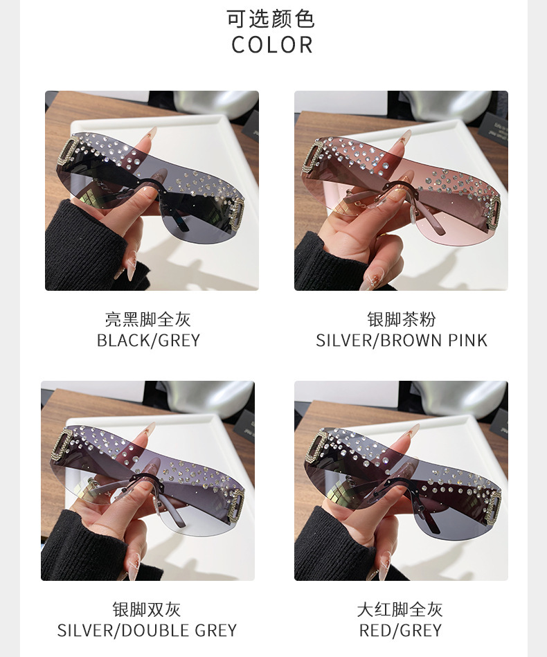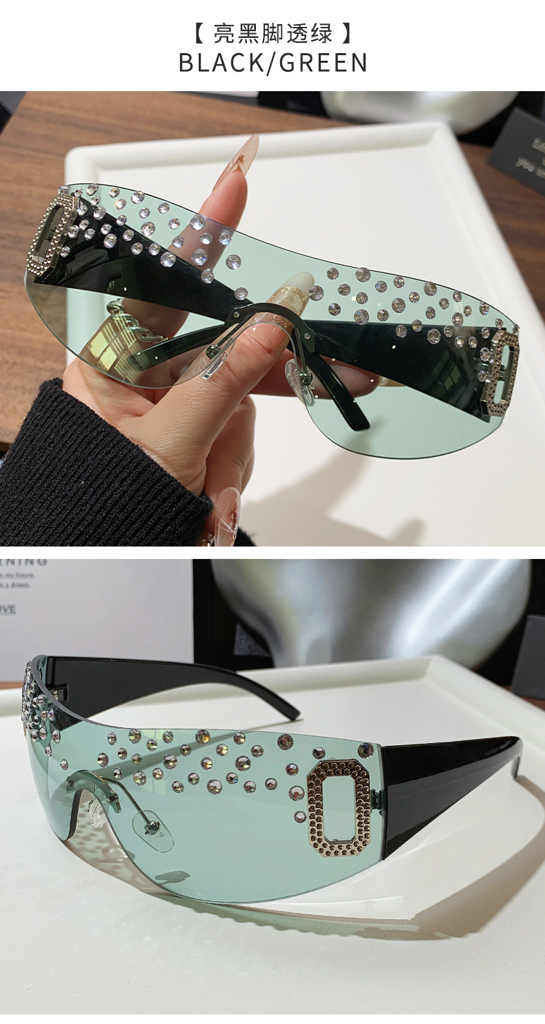 국경 간 새로운 다이아몬드 통합 대형 프레임 선글라스 유럽과 미국의 밀레니엄 스타일 스파이스 걸스 선글라스 여성 하이 엔드 선글라스