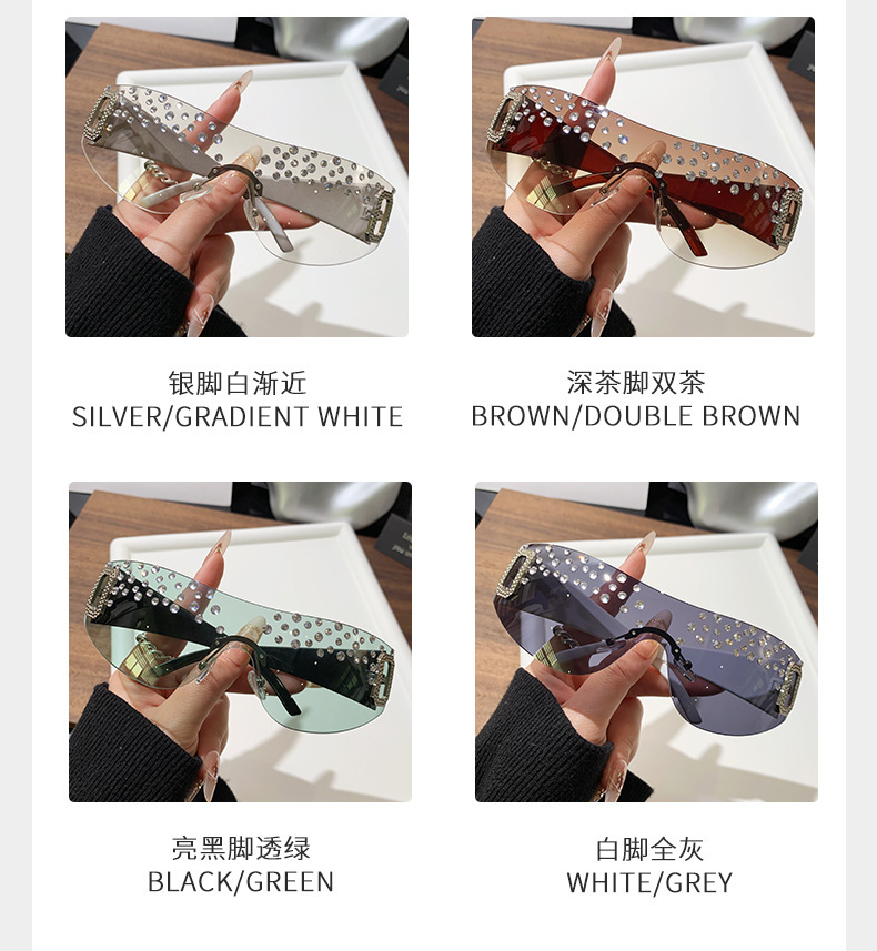 국경 간 새로운 다이아몬드 통합 대형 프레임 선글라스 유럽과 미국의 밀레니엄 스타일 스파이스 걸스 선글라스 여성 하이 엔드 선글라스스토어 가기
