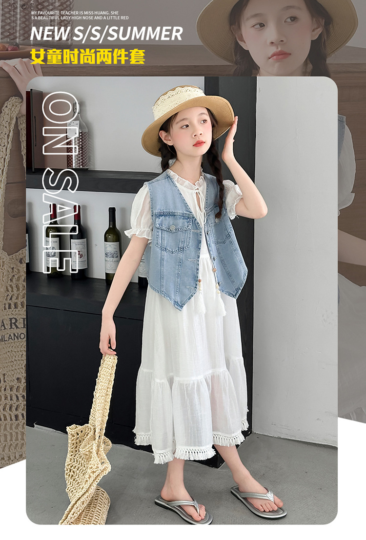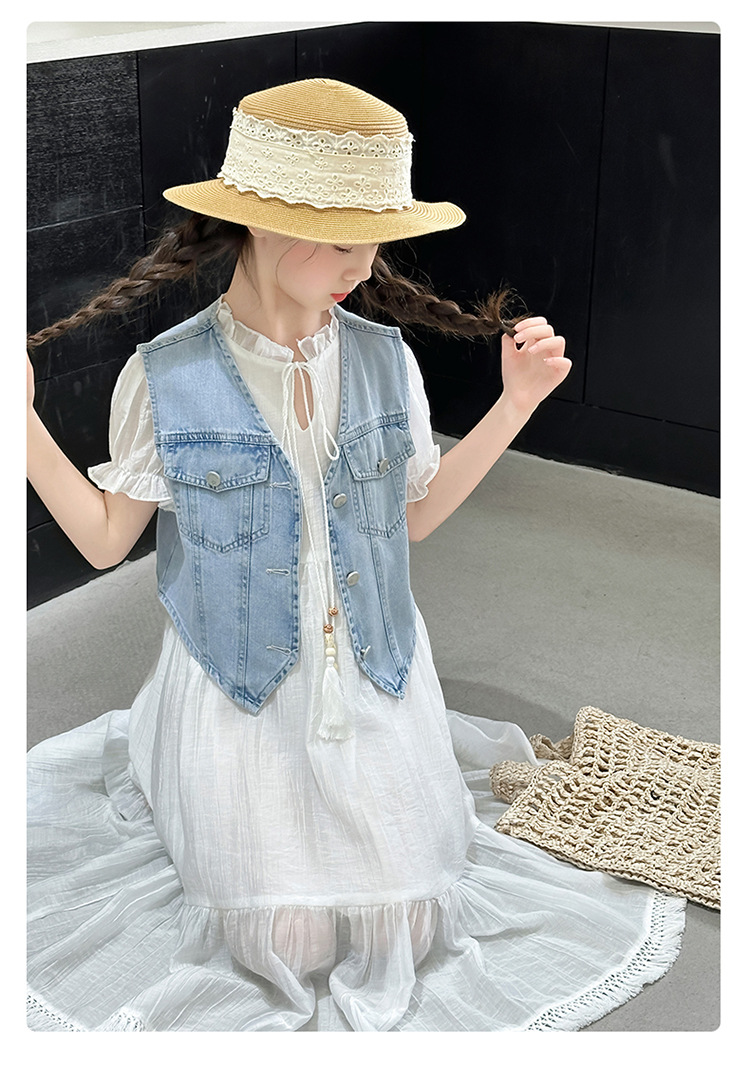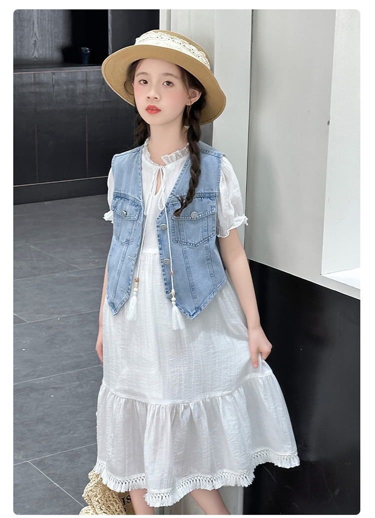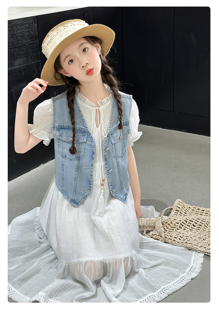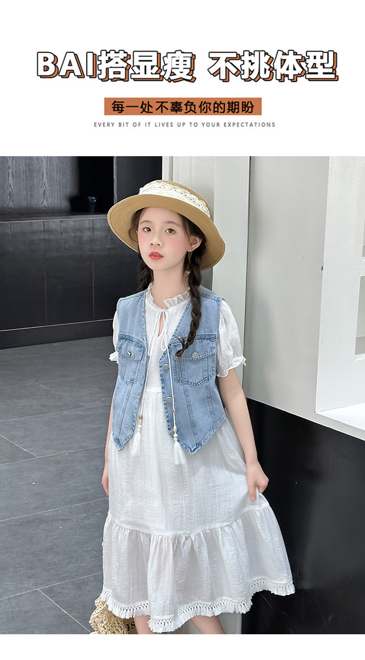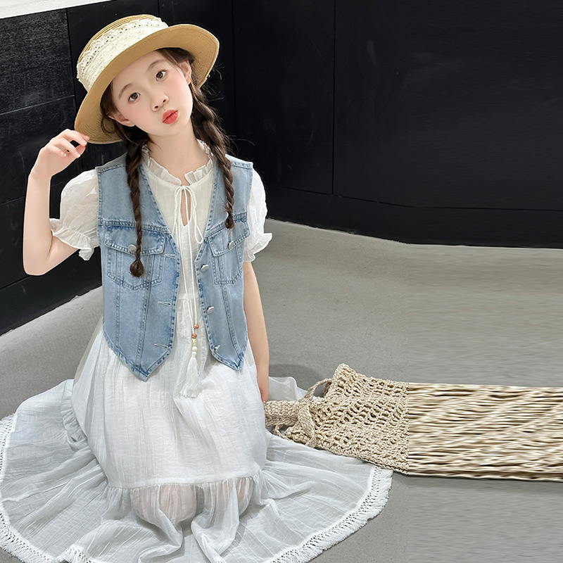 아동 의류 2025 여름 새 스타일 소녀 데님 조끼 코트 한국 스타일 아동 스타일 소녀 조끼 드롭 배송