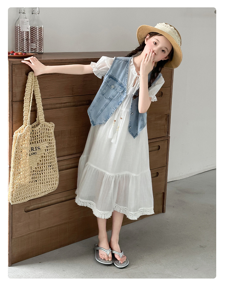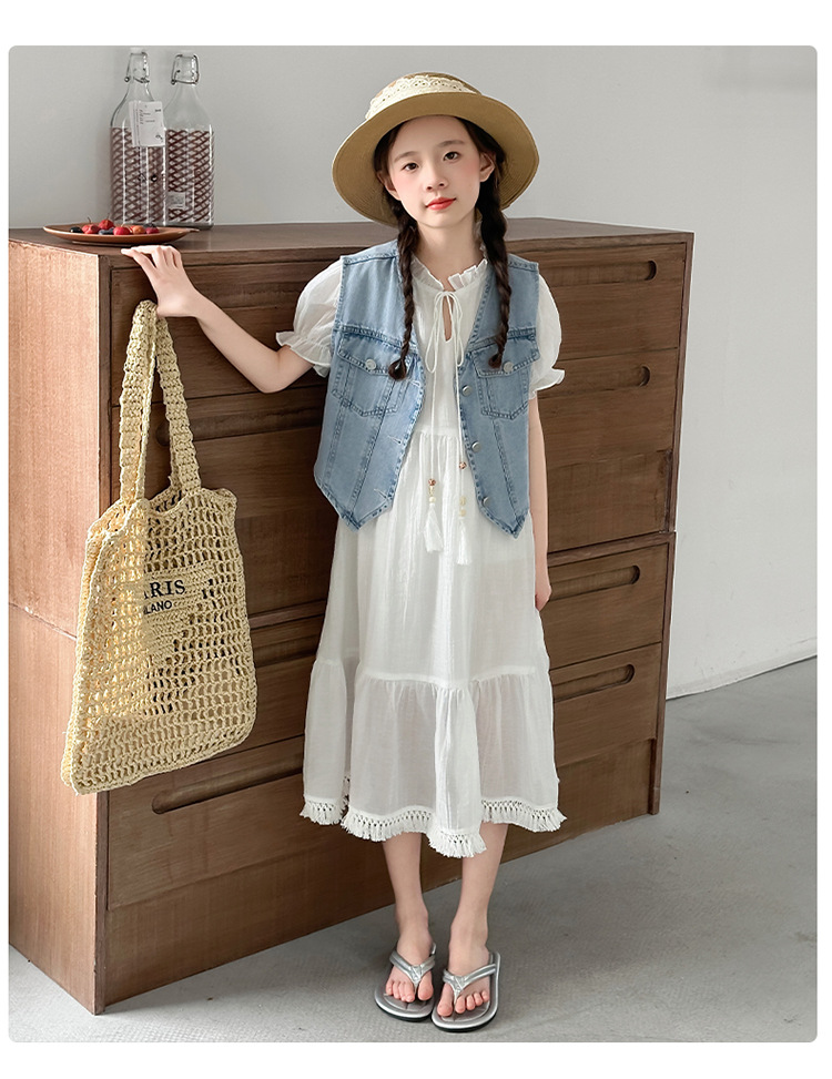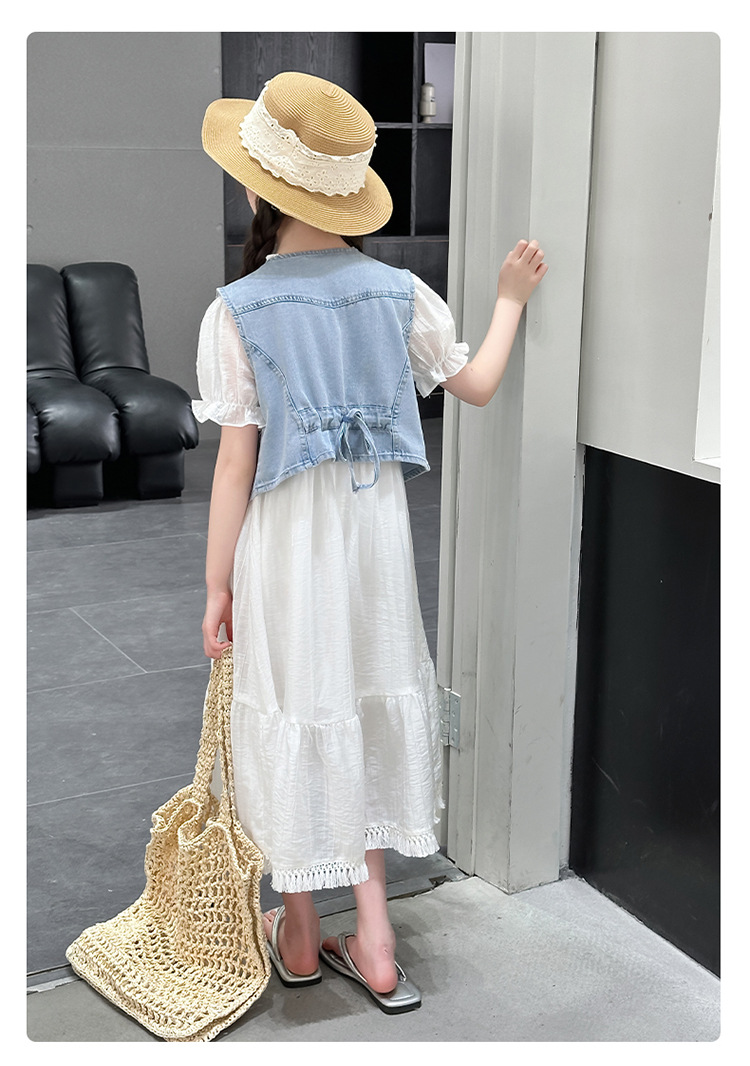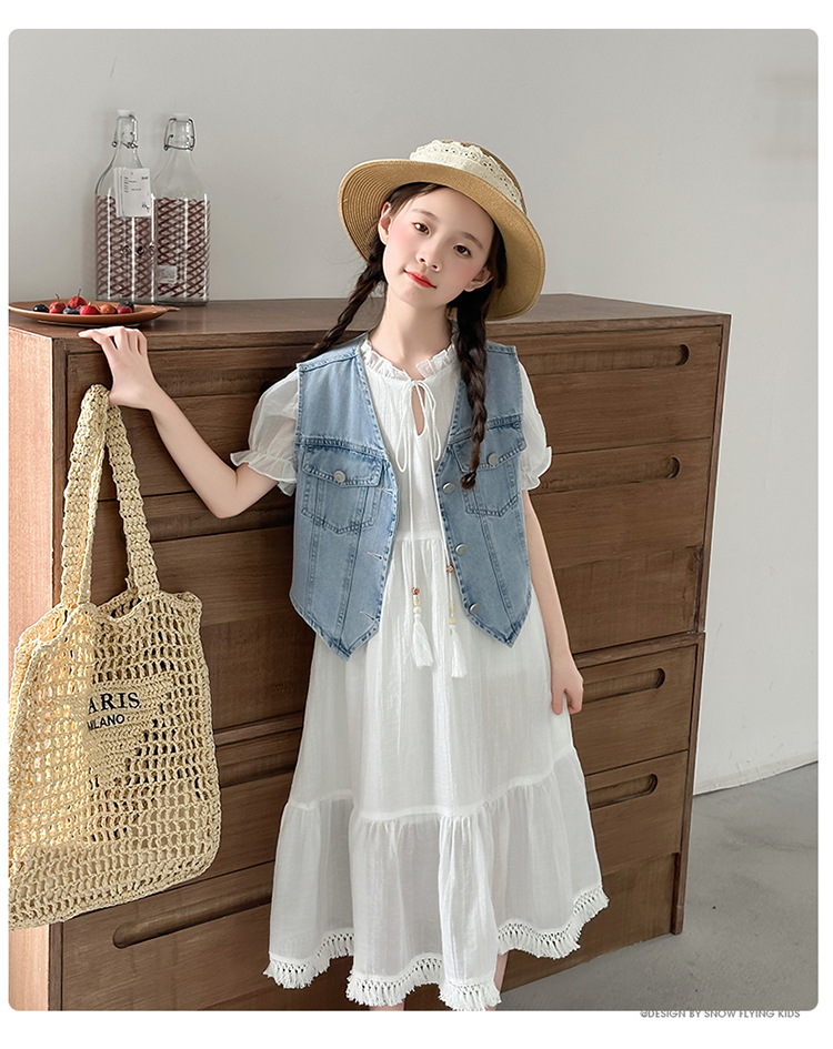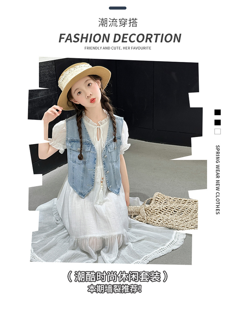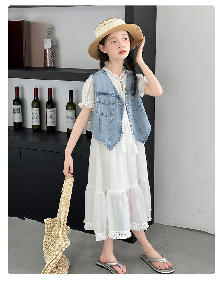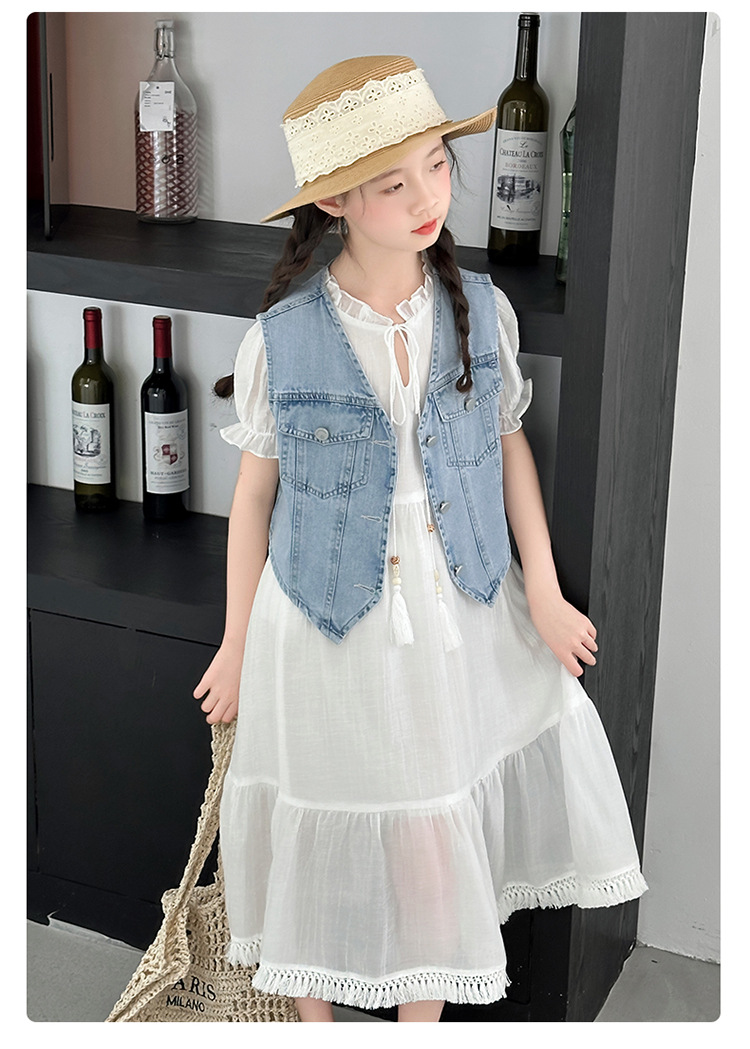 아동 의류 2025 여름 새 스타일 소녀 데님 조끼 코트 한국 스타일 아동 스타일 소녀 조끼 드롭 배송