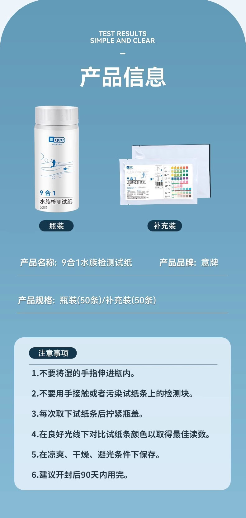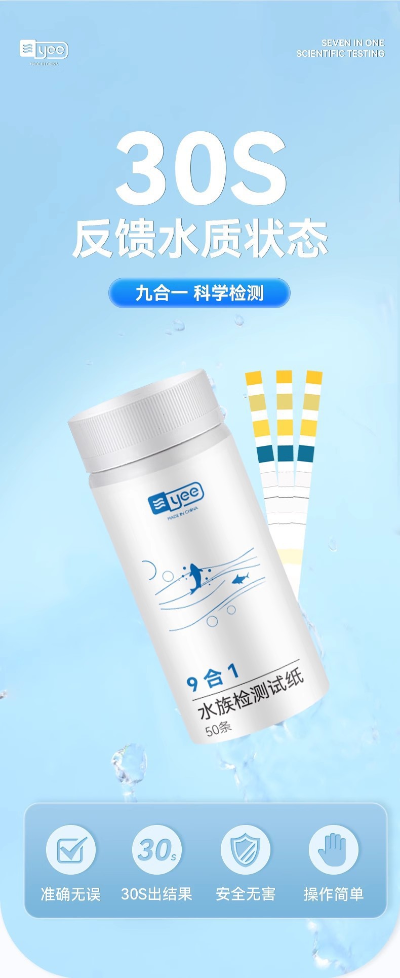 50 9-in-1 수족관 물고기 탱크 수질 테스트 용지 고정밀 아질산염 산성 및 알칼리 ph 값 테스트 용지