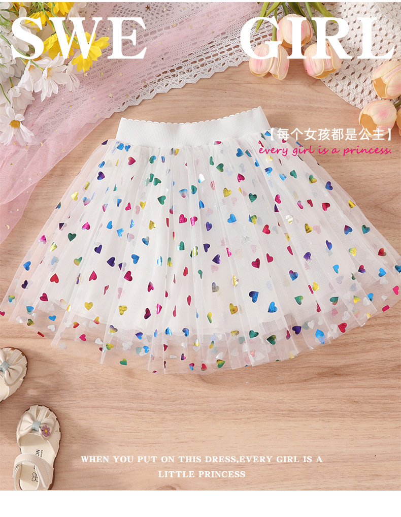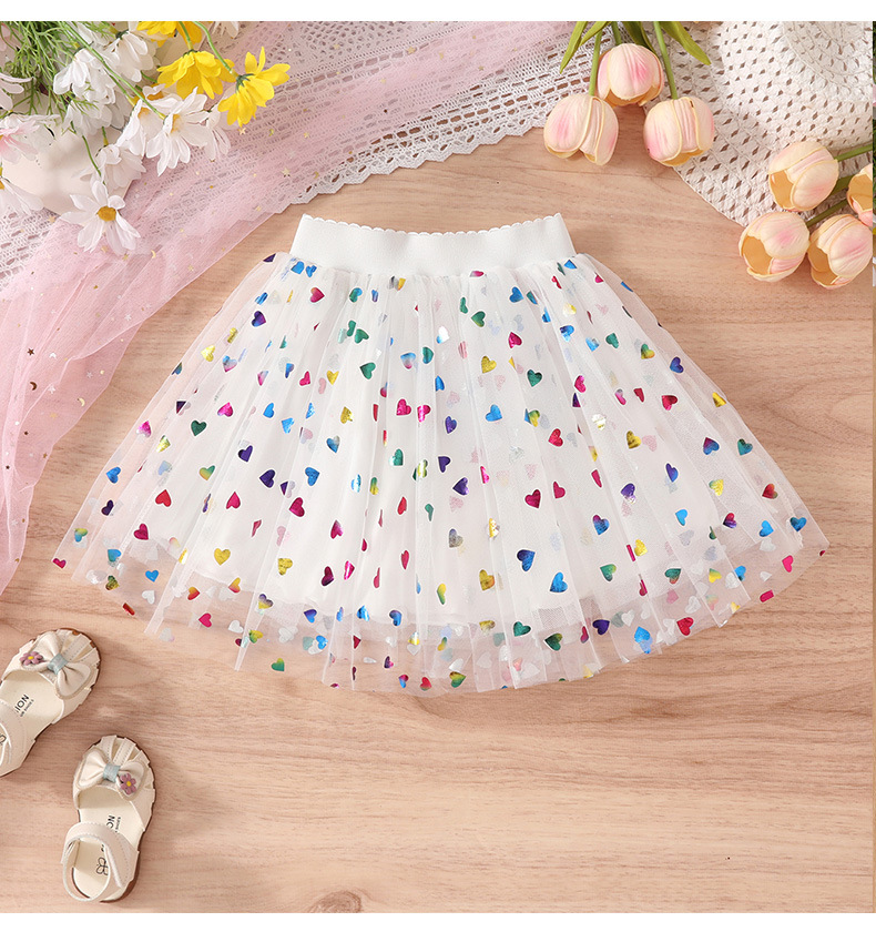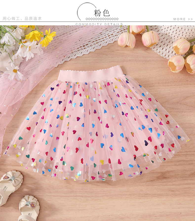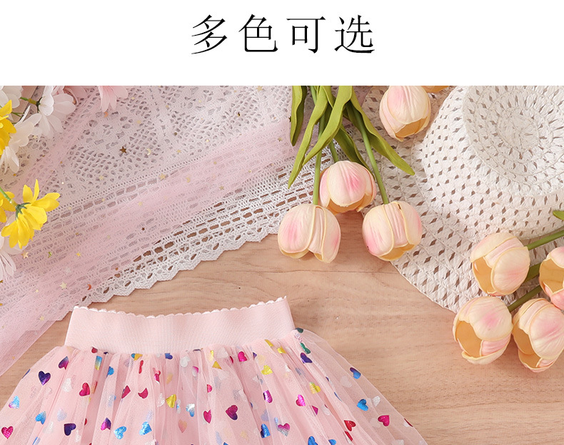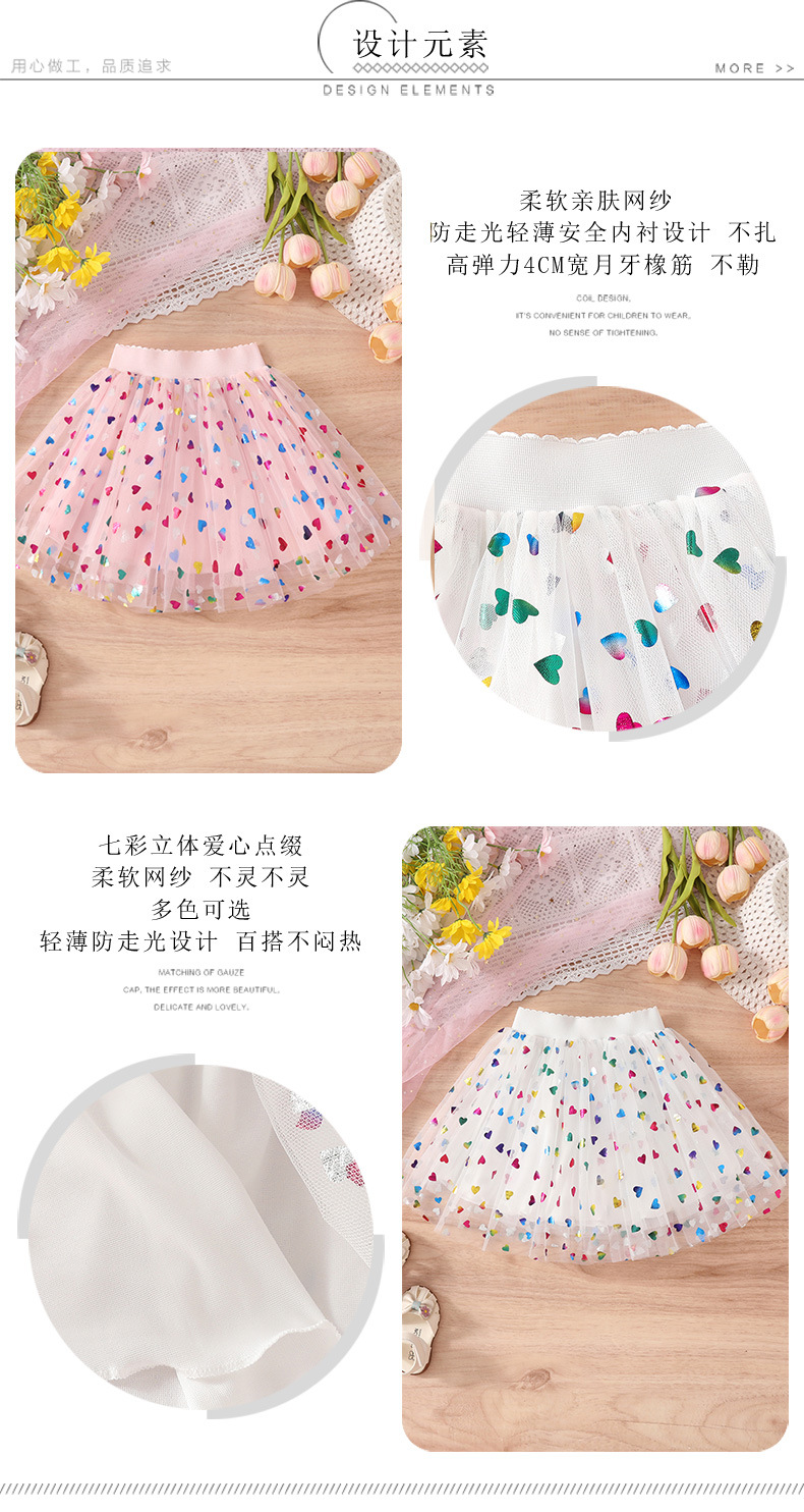 사계절 아동 의류 도매 소녀 사랑 스커트 2025 여름 짧은 치마 푹신한 소녀 복숭아 하트 공주 스커트