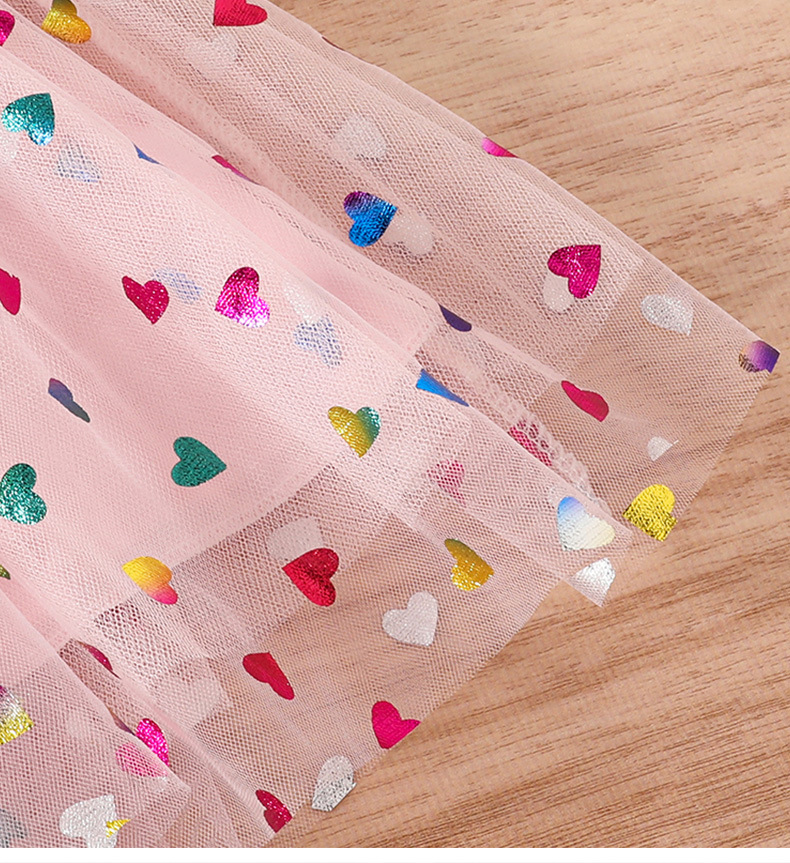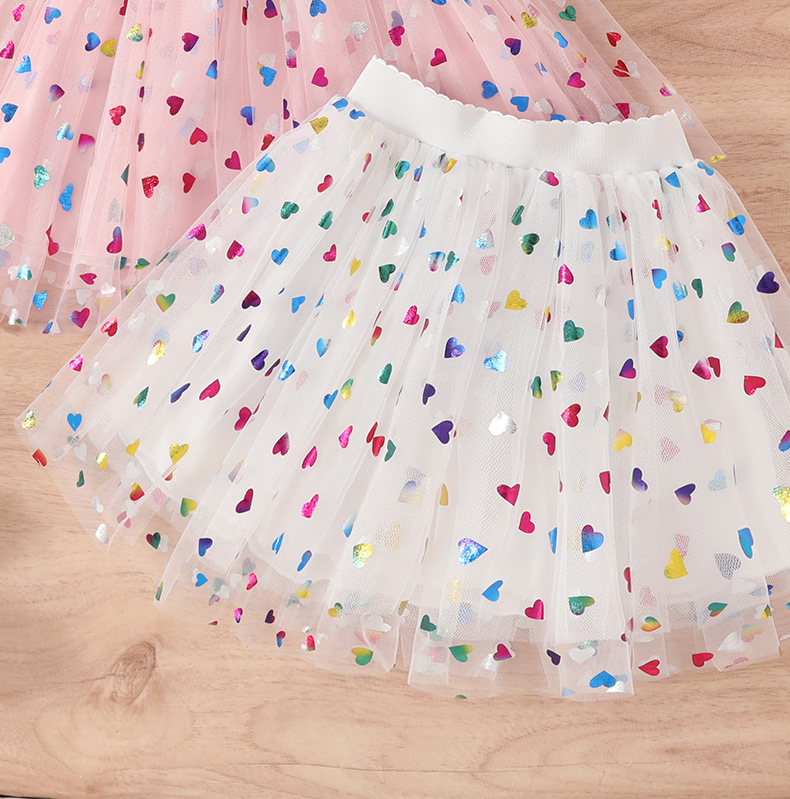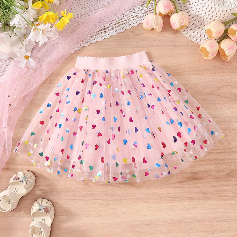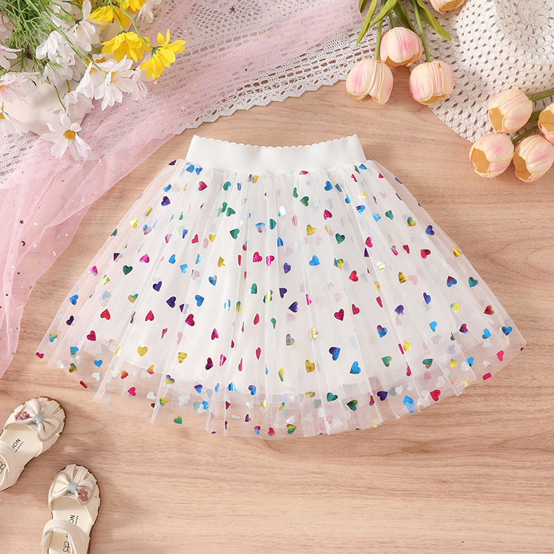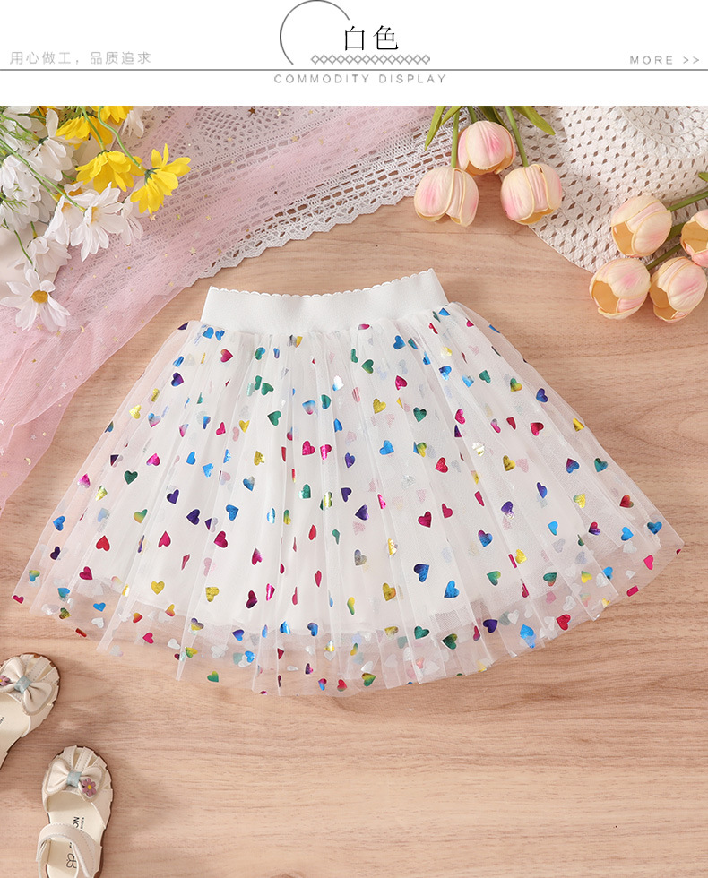 사계절 아동 의류 도매 소녀 사랑 스커트 2025 여름 짧은 치마 푹신한 소녀 복숭아 하트 공주 스커트