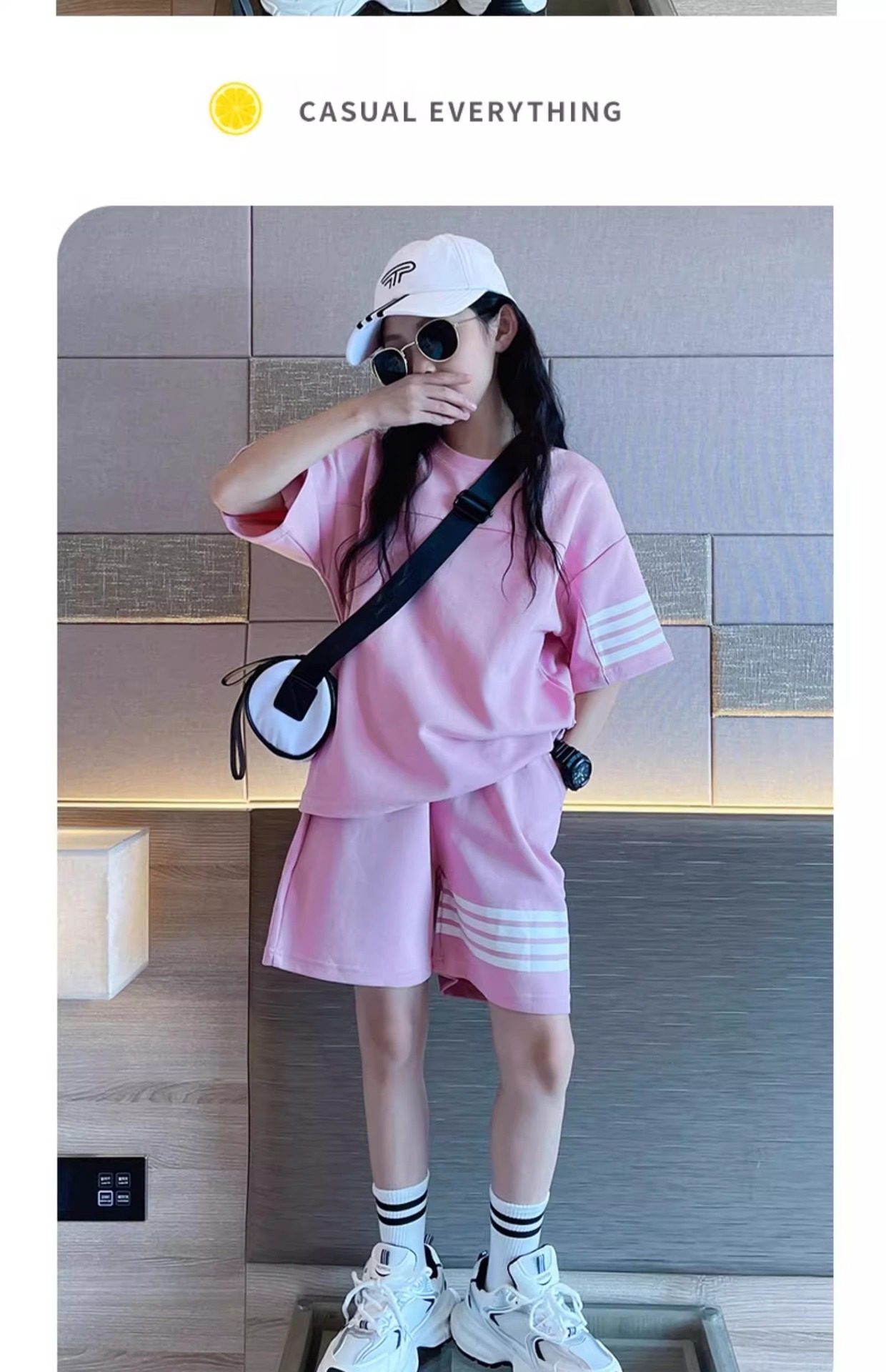 여자 여름 세트 한국 스타일 여자 인터넷 연예인 거리 스포츠 착용 중학생 유행 여자 반팔 옷스토어 가기