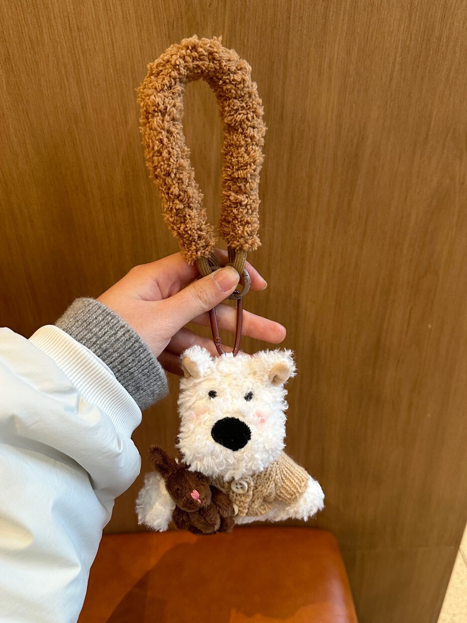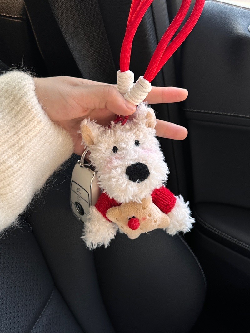 귀여운 웨스트 하이랜드 봉제 펜던트 가방 교수형 만화 조각 된 강아지 인형 키 체인 액세서리 동반 선물