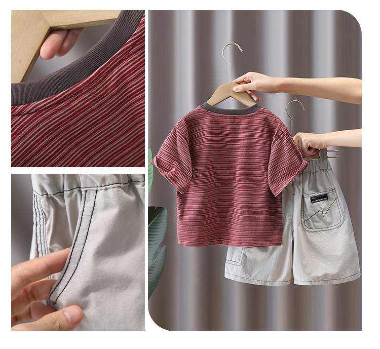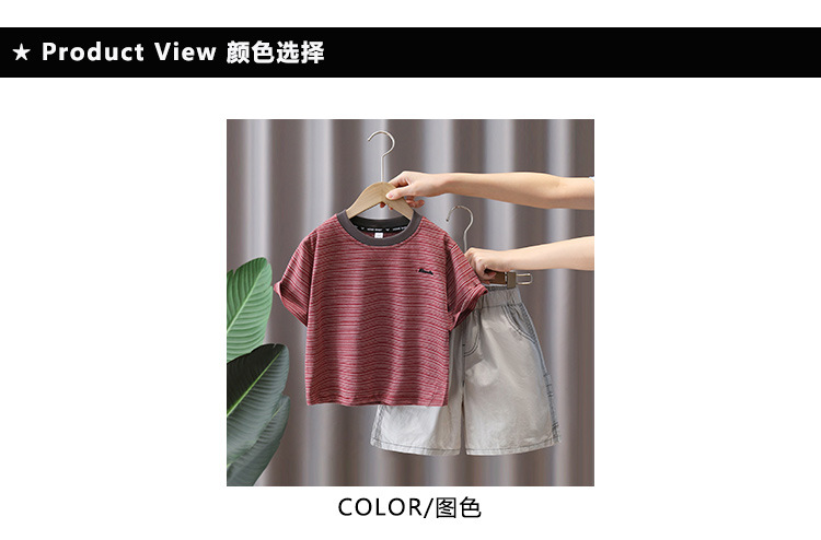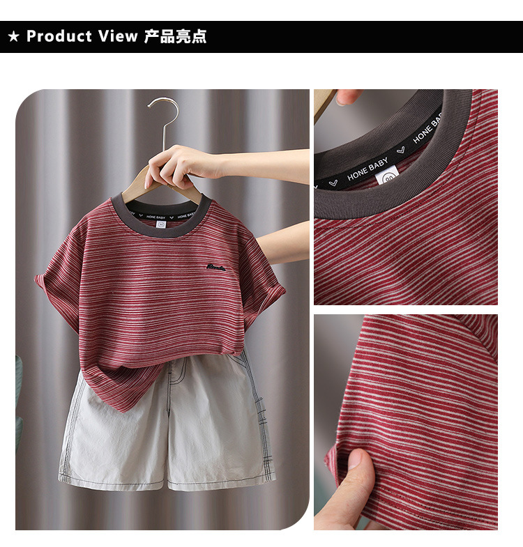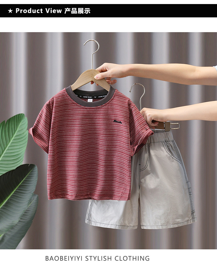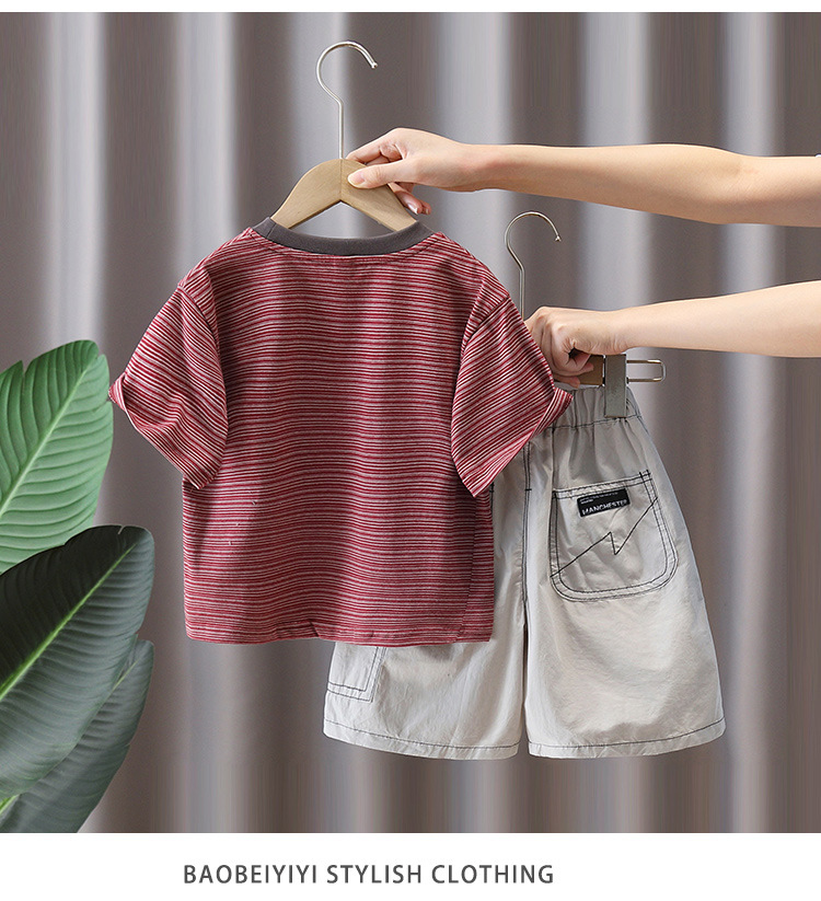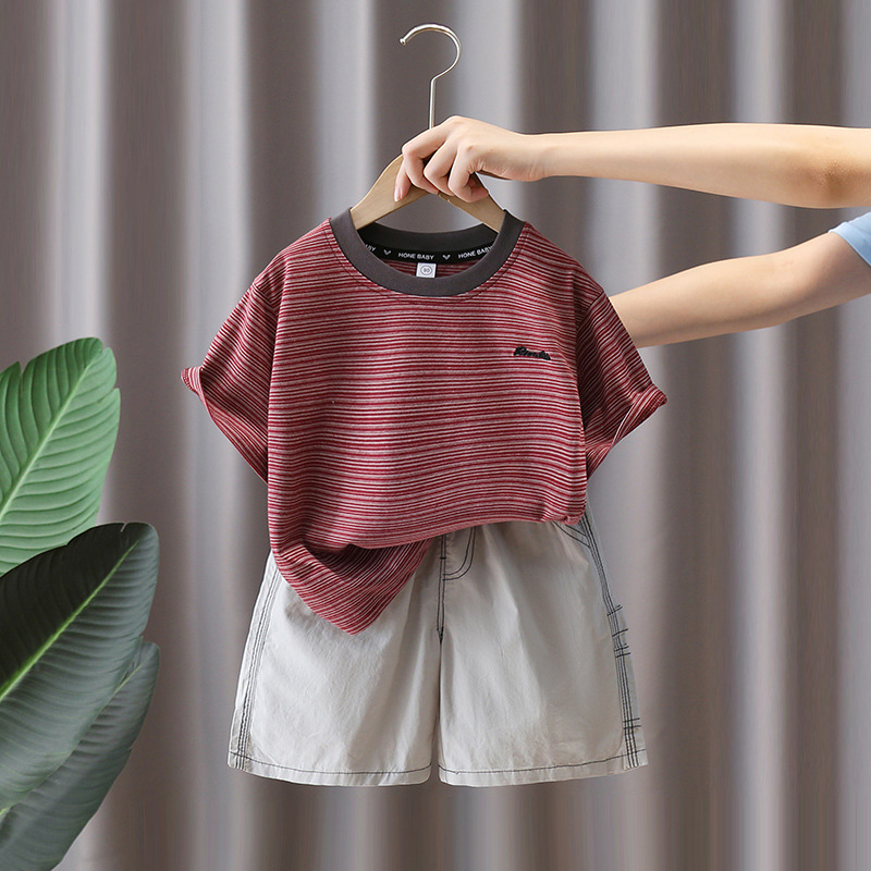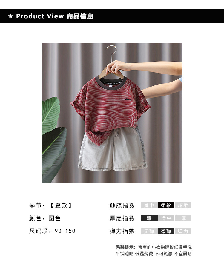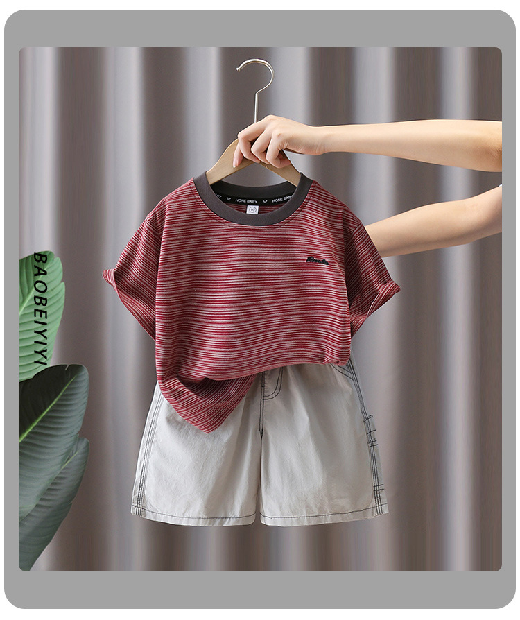 7368 아동복 소년 여름 세트 어린이 한국 줄무늬 티셔츠 여름 패션 시원한 반팔 반바지 투피스 여름 5