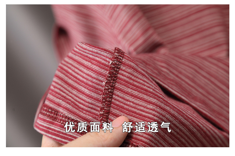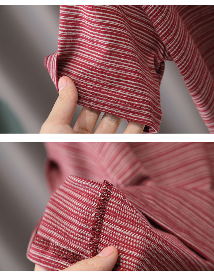 • 빨간색 줄무늬 티셔츠 + 캐주얼 반바지