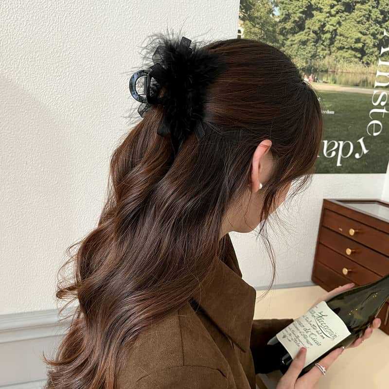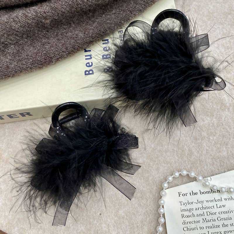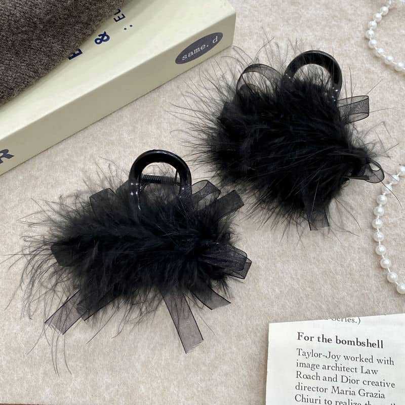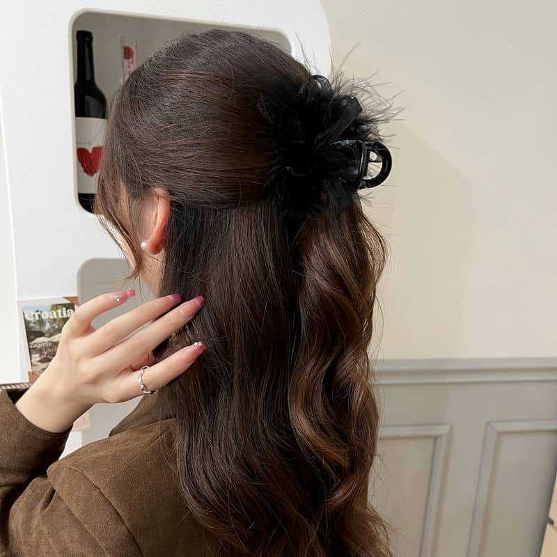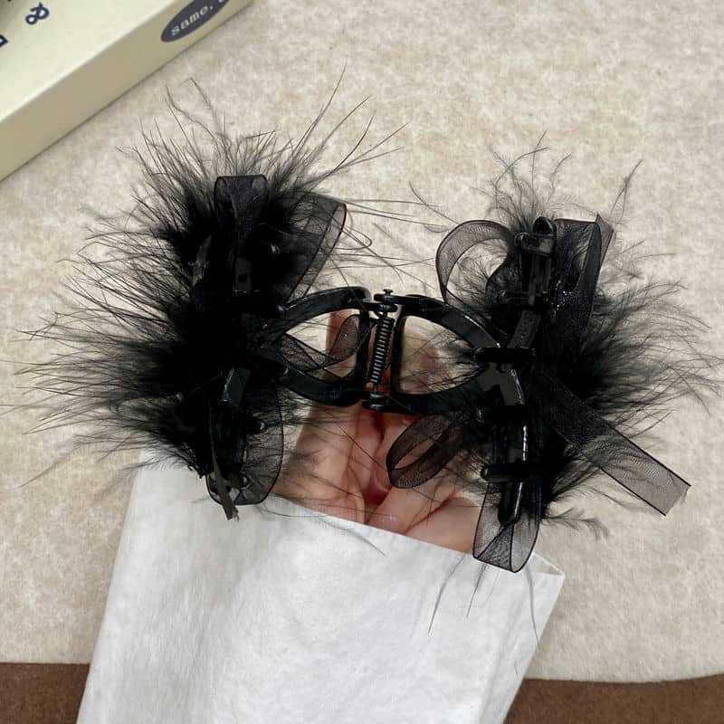 연예인 같은 스타일 검은 꿈 짜는 깃털 머리핀 한국식 하이 엔드 상어 클립 우아한 패션 올매치 그랩 헤어 액세서리