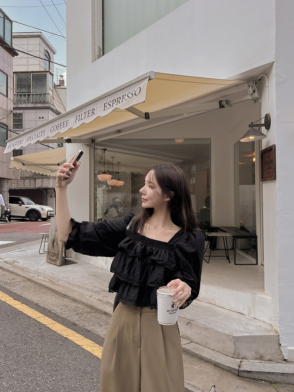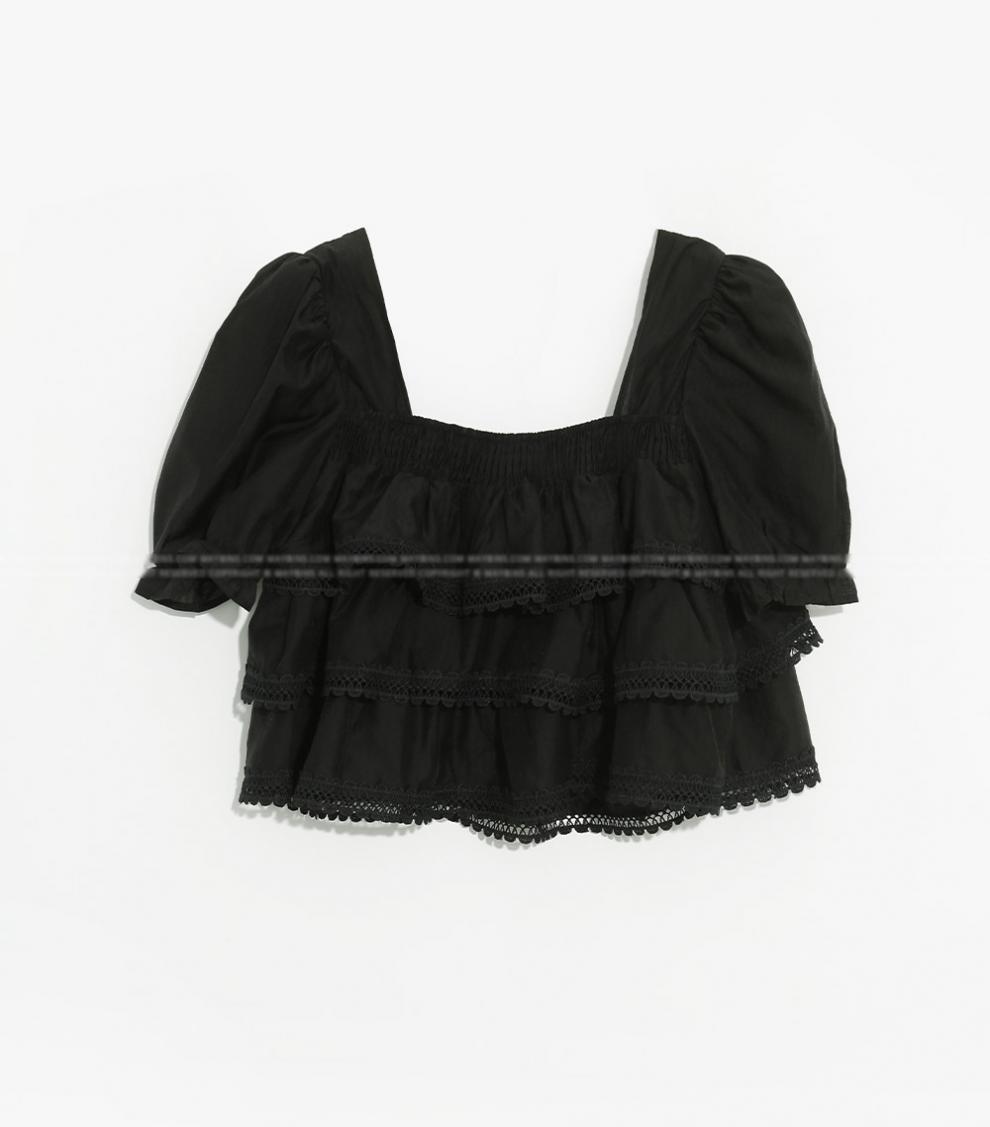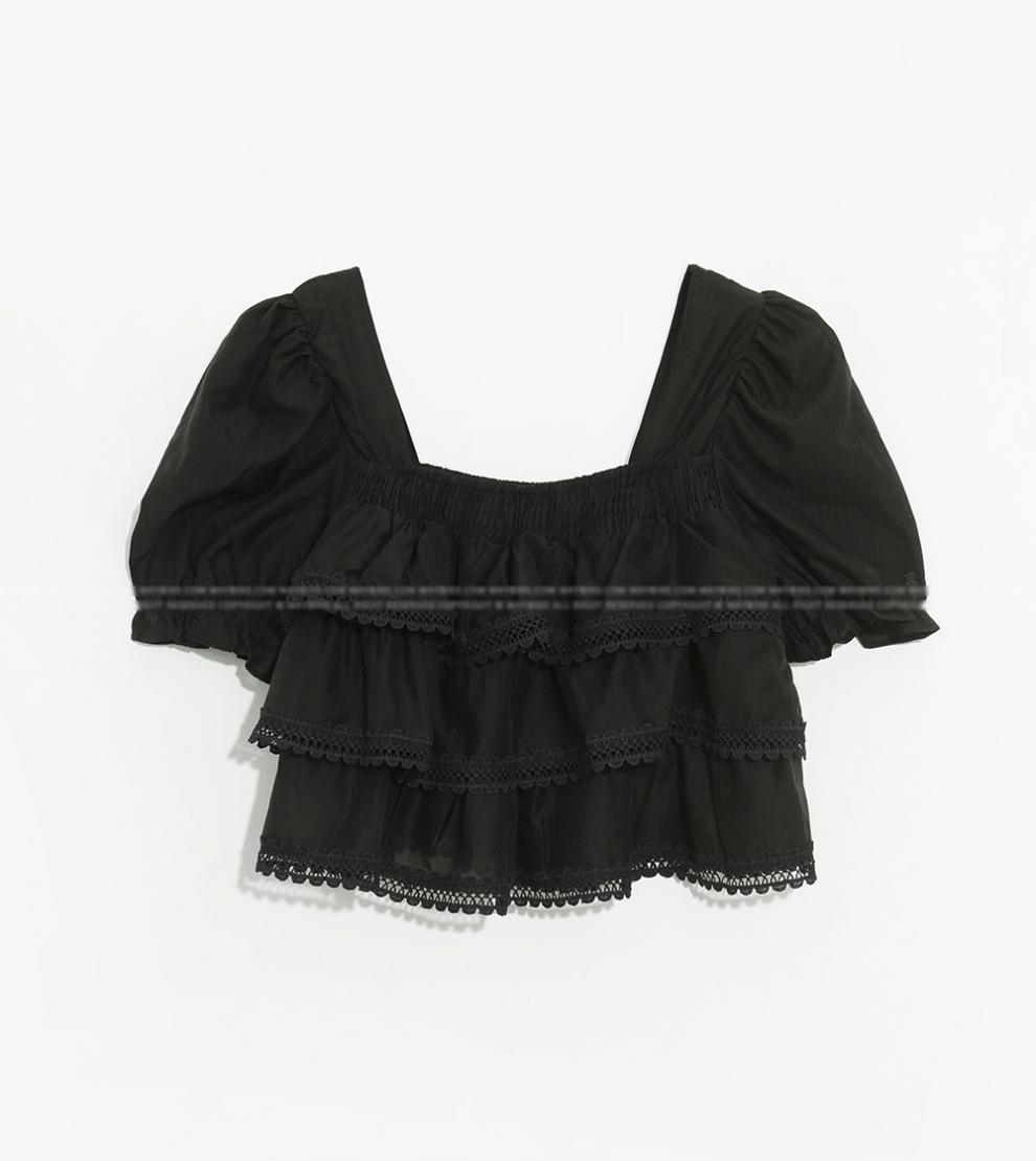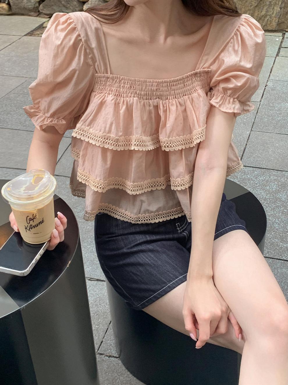 헤비듀티 스위트 레이스 쉬폰 셔츠 한국 스타일 시크하고 가볍고 세련된 소녀들을 위한 독특한 디자인스토어 가기