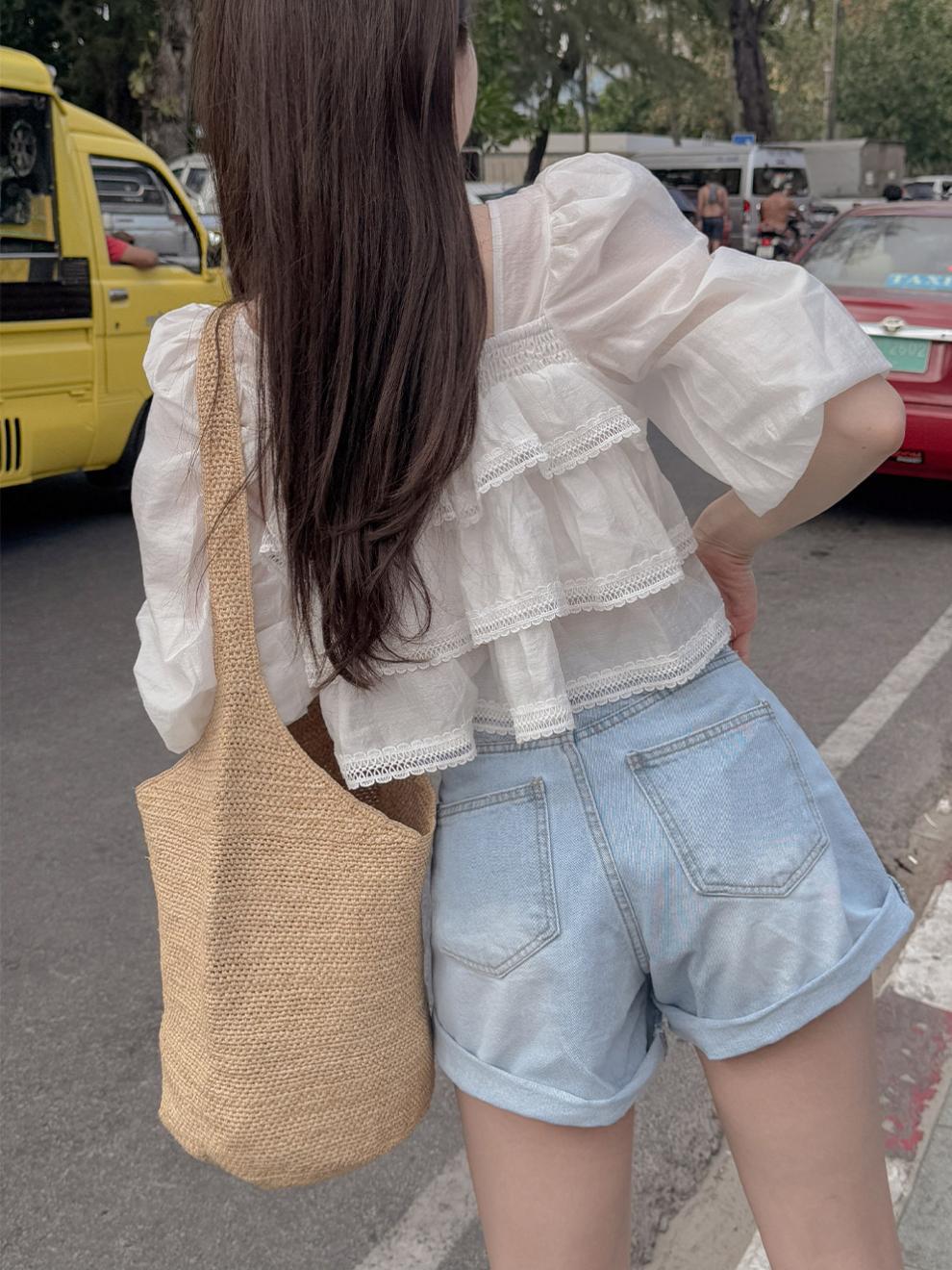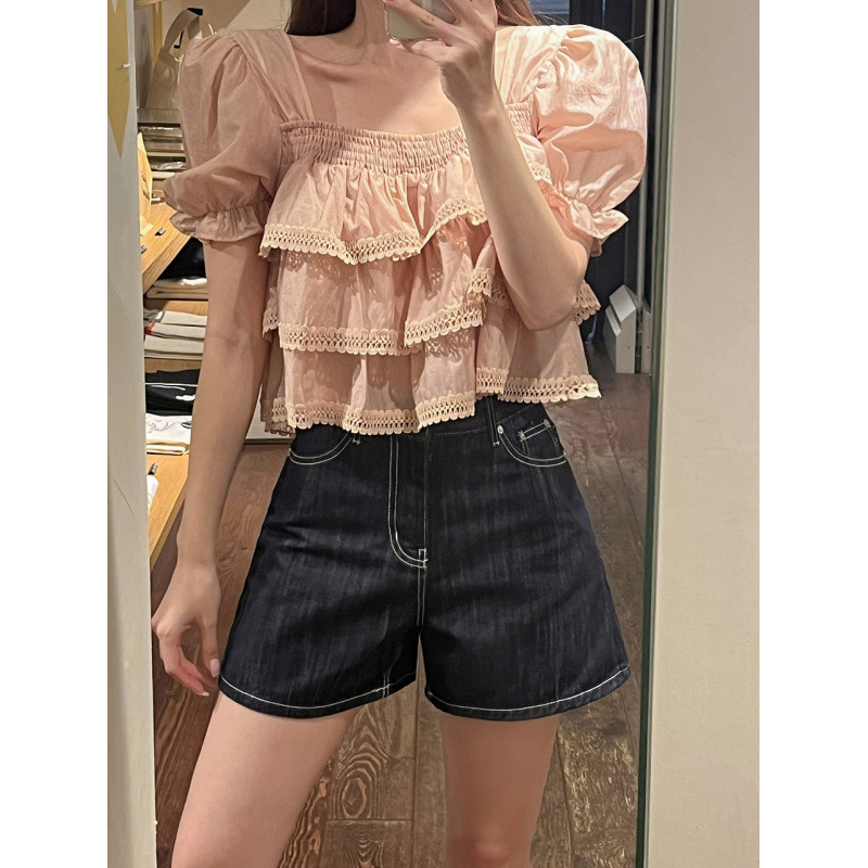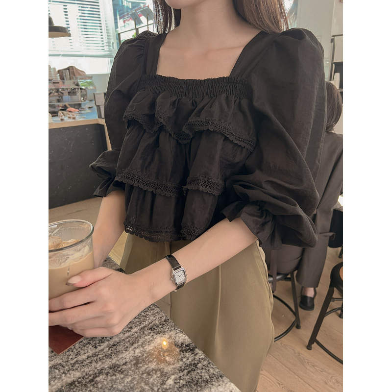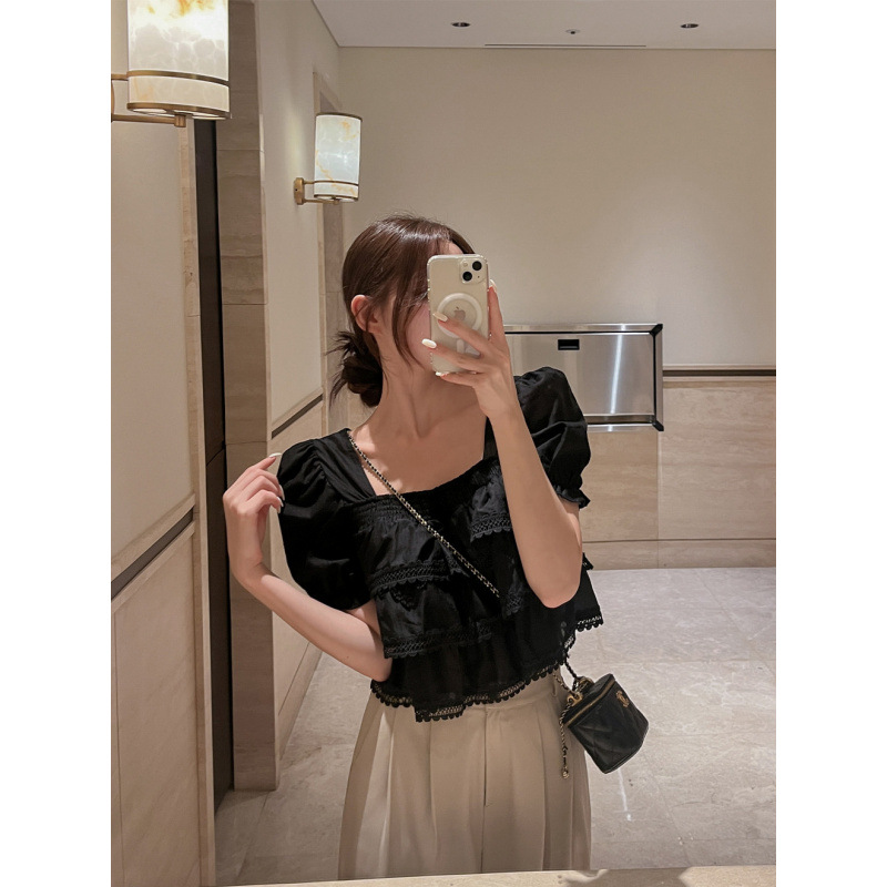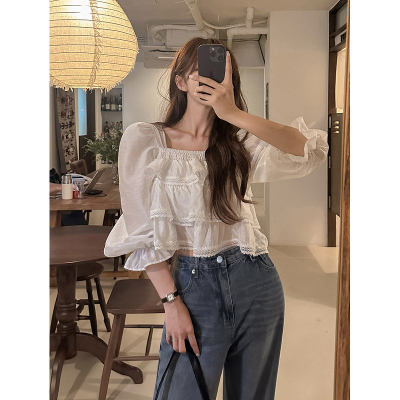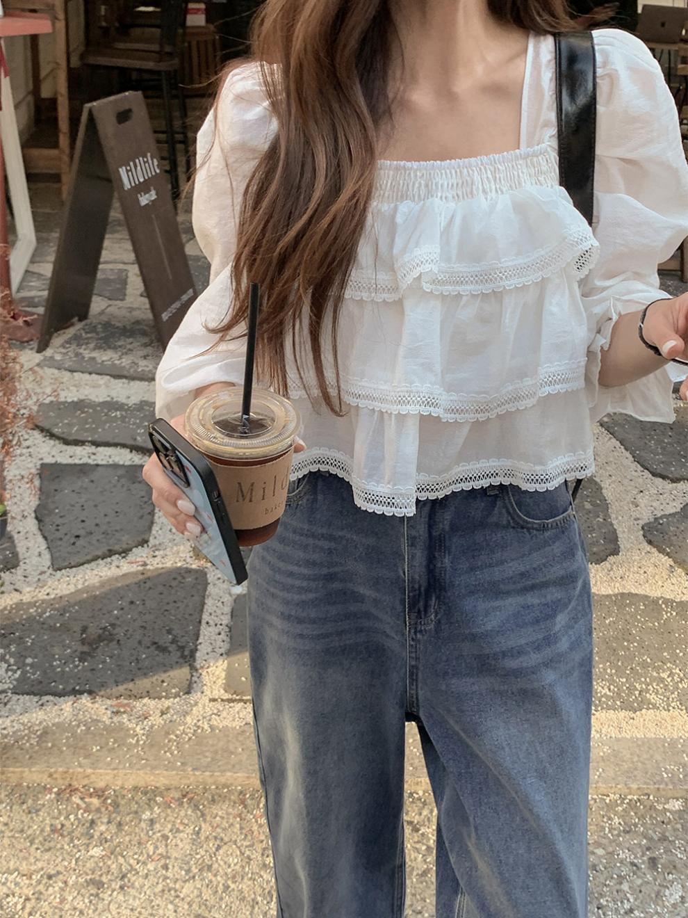 헤비듀티 스위트 레이스 쉬폰 셔츠 한국 스타일 시크하고 가볍고 세련된 소녀들을 위한 독특한 디자인