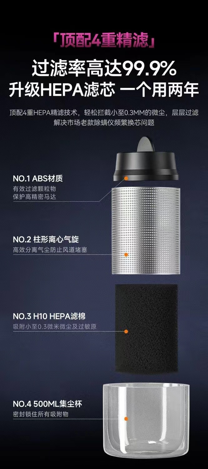 • 고급 보라색 + 8개 필터 요소, 롤러 브러시로 머리카락 제거 가능