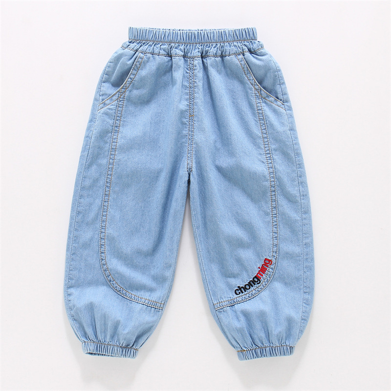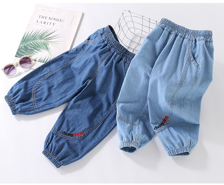 100% 면 소년 청바지 얇은 여름 하프 스타일 느슨한 부드러운 레깅스 어린이 바지스토어 가기