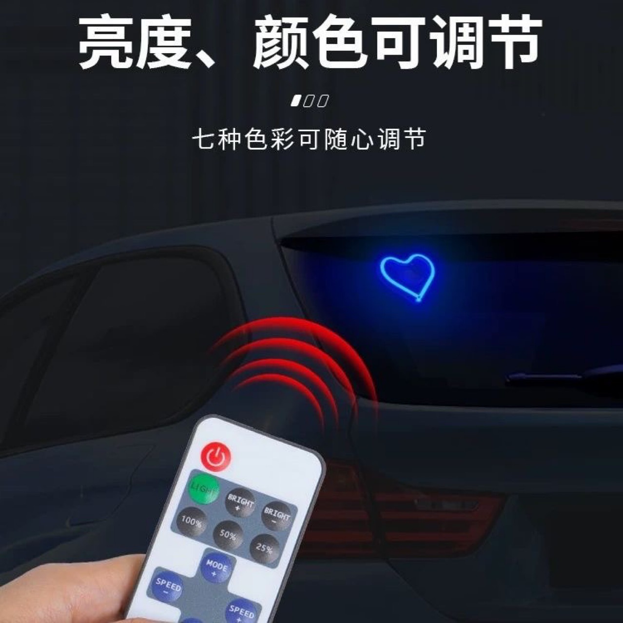 자동차 LED 창 네온 램프 배터리 빛나는 심장 모양의 장식 램프 자동차 인터페이스 무선 원격 제어 대기 램프