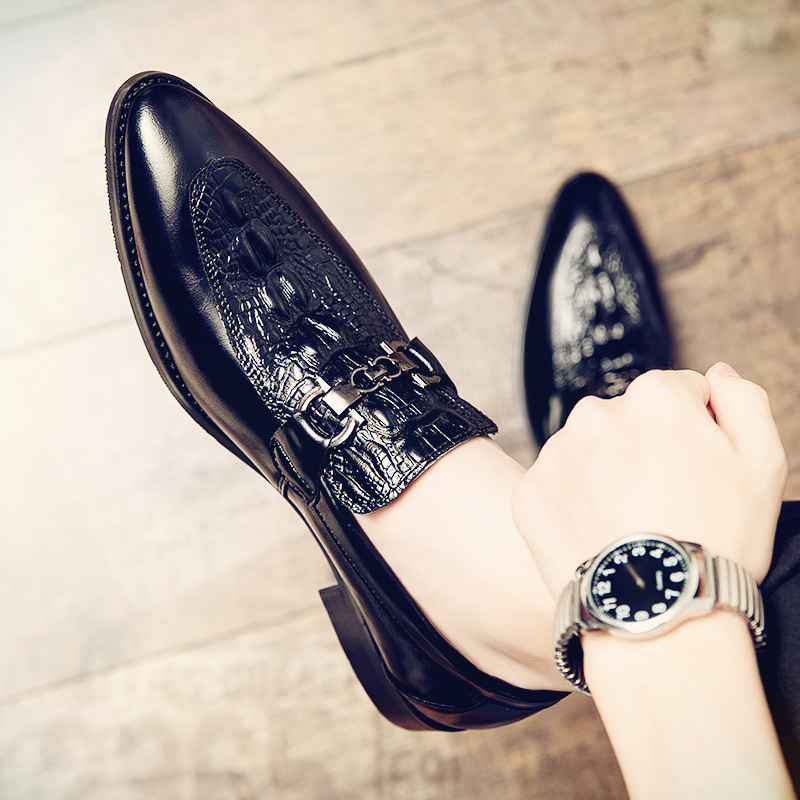 가죽 신발 남성 가을 영국 비즈니스 원피스 작은 가죽 신발 남성 게으른 캐주얼 콩 신발 나이트 샵 스타일리스트 트렌디 신발스토어 가기