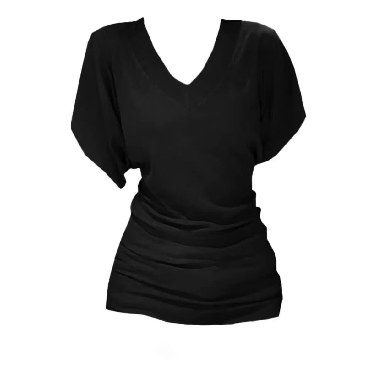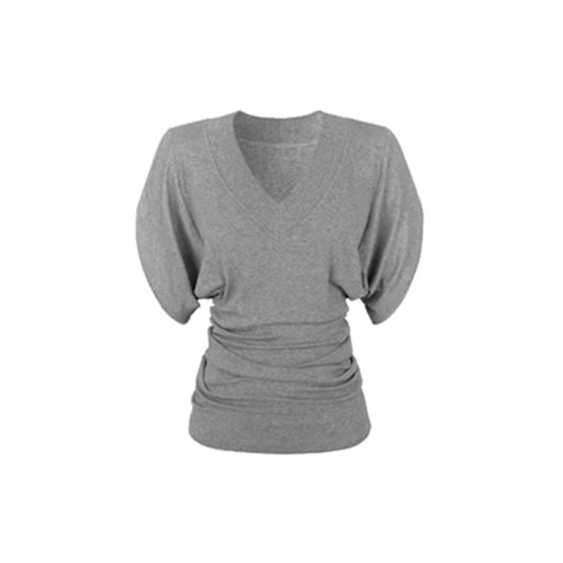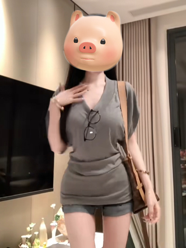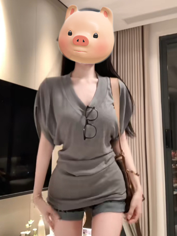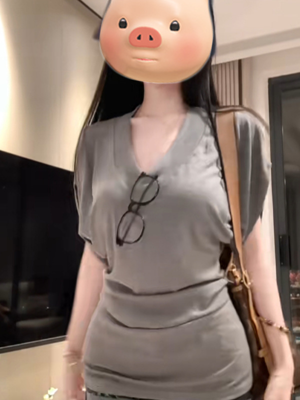 아메리칸 스타일 레트로 V-넥 반팔 티셔츠 여성 여름 새 스타일 슬리밍 허리-슬리밍 틈새 하이 엔드 매트-슬리브 탑스토어 가기