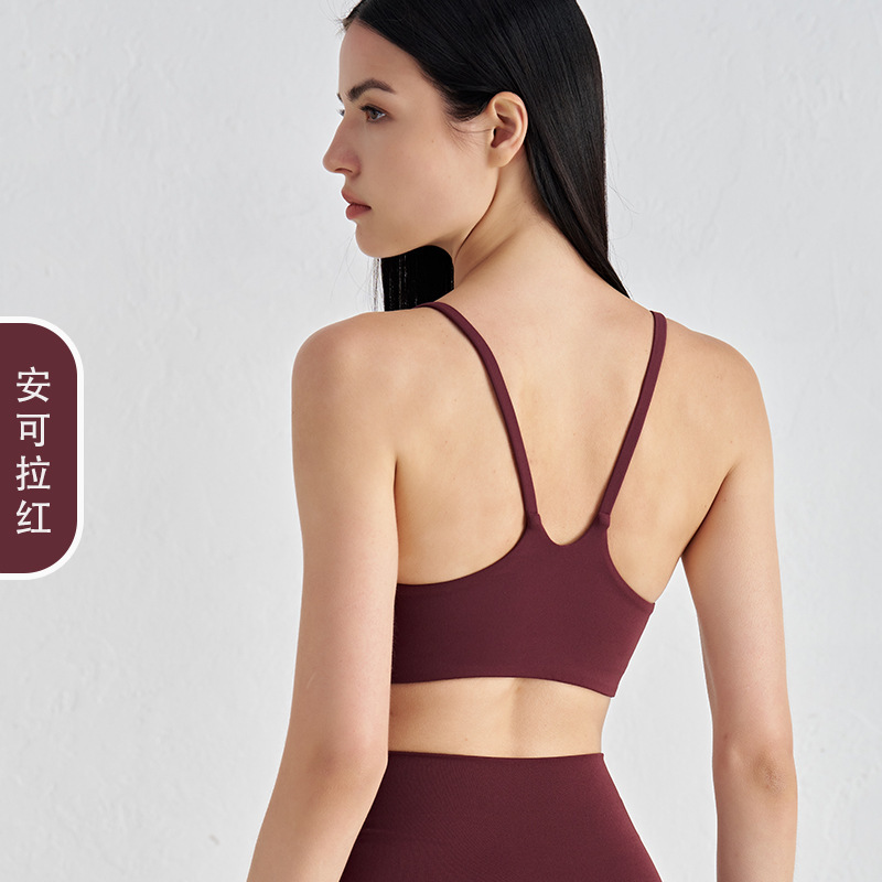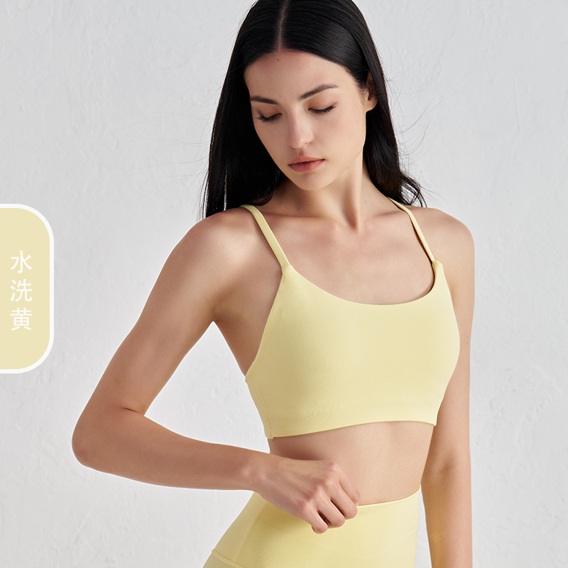 여성용 네이키드 봄 여름 요가 조끼, 스파게티 스트랩, 탈착식 가슴 패드, 스포츠 브라, 슬링, U넥 푸쉬업 피트니스 워드