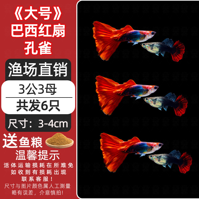 • 대형 3-4cm 빨간 공작, 수컷 3마리, 암컷 3마리, 무료 생선 먹이