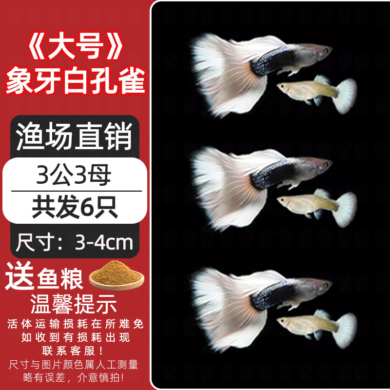 • 대형 3-4cm 아이보리 공작, 수컷 3마리, 암컷 3마리, 무료 생선 먹이