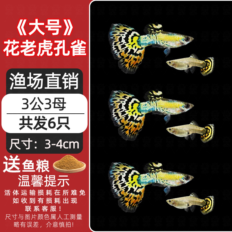 • 대형 3-4cm 꽃호랑이 공작 3 수컷 3 암컷 무료 생선 먹이