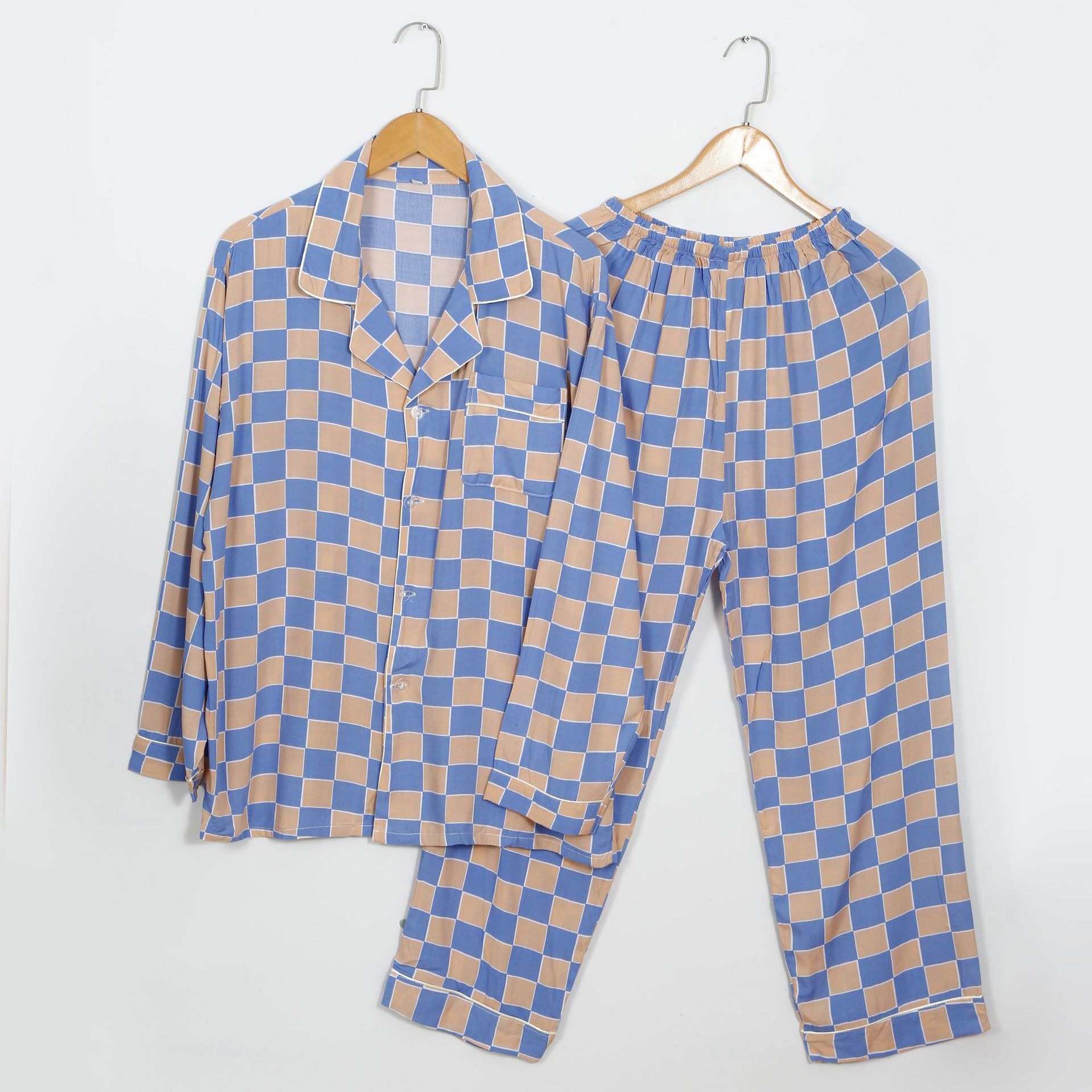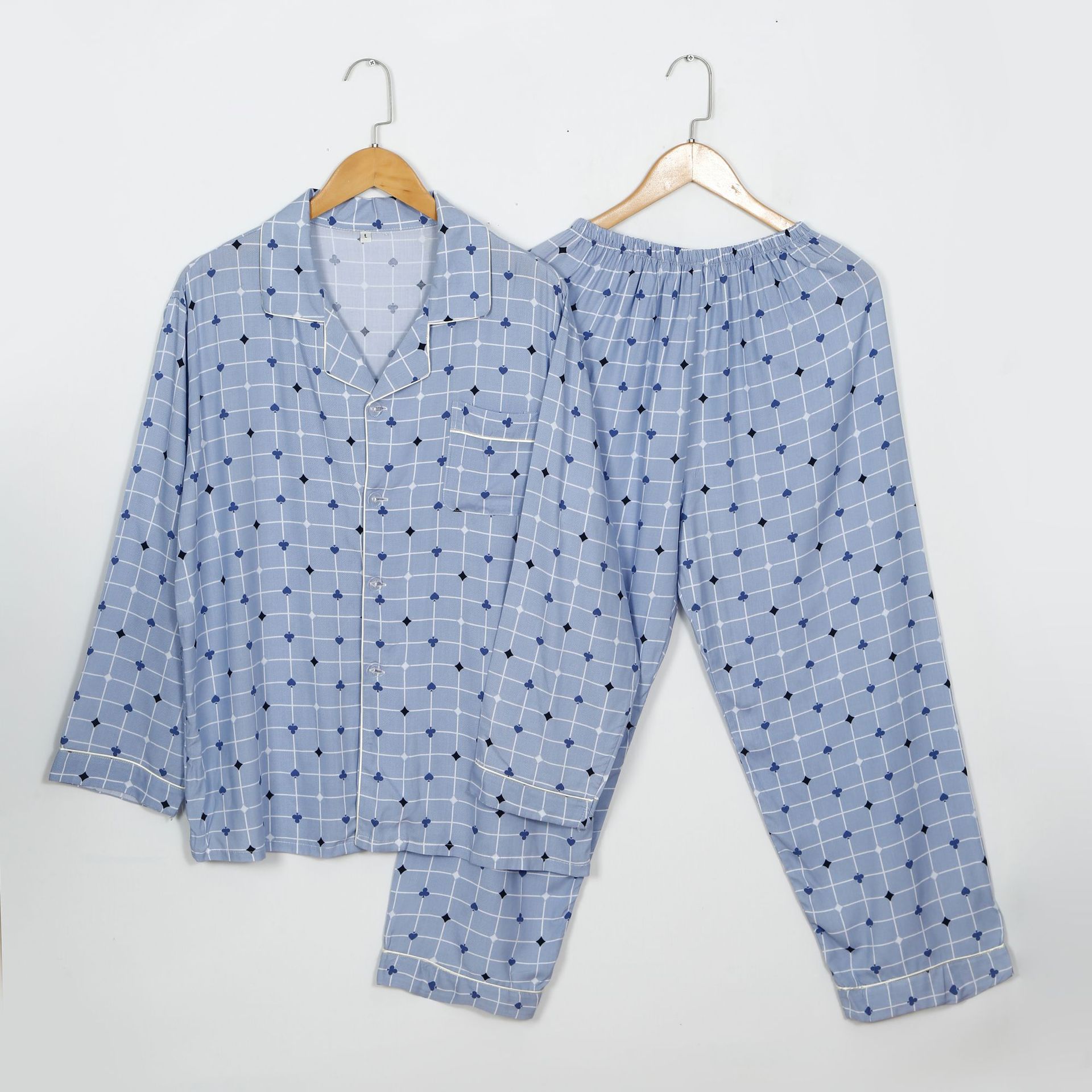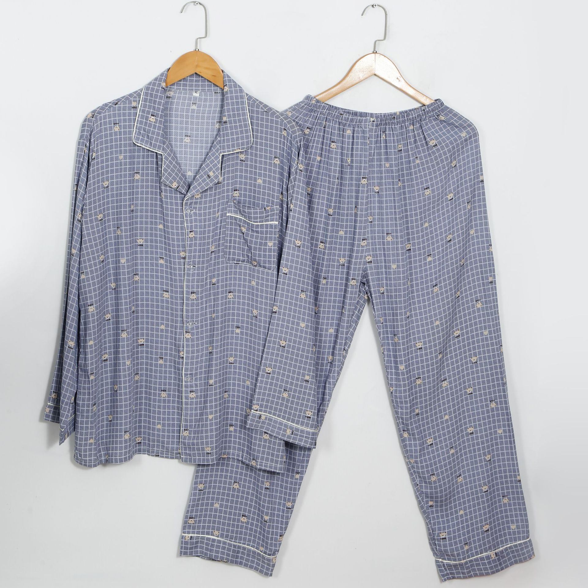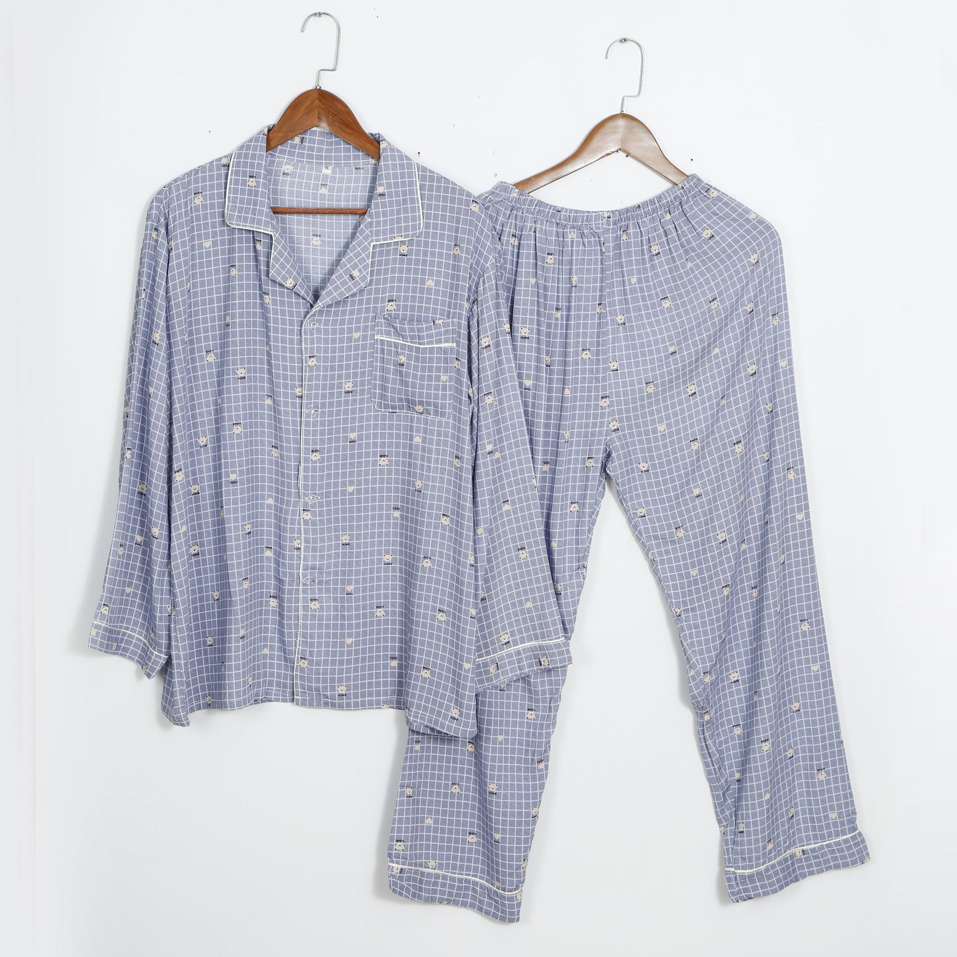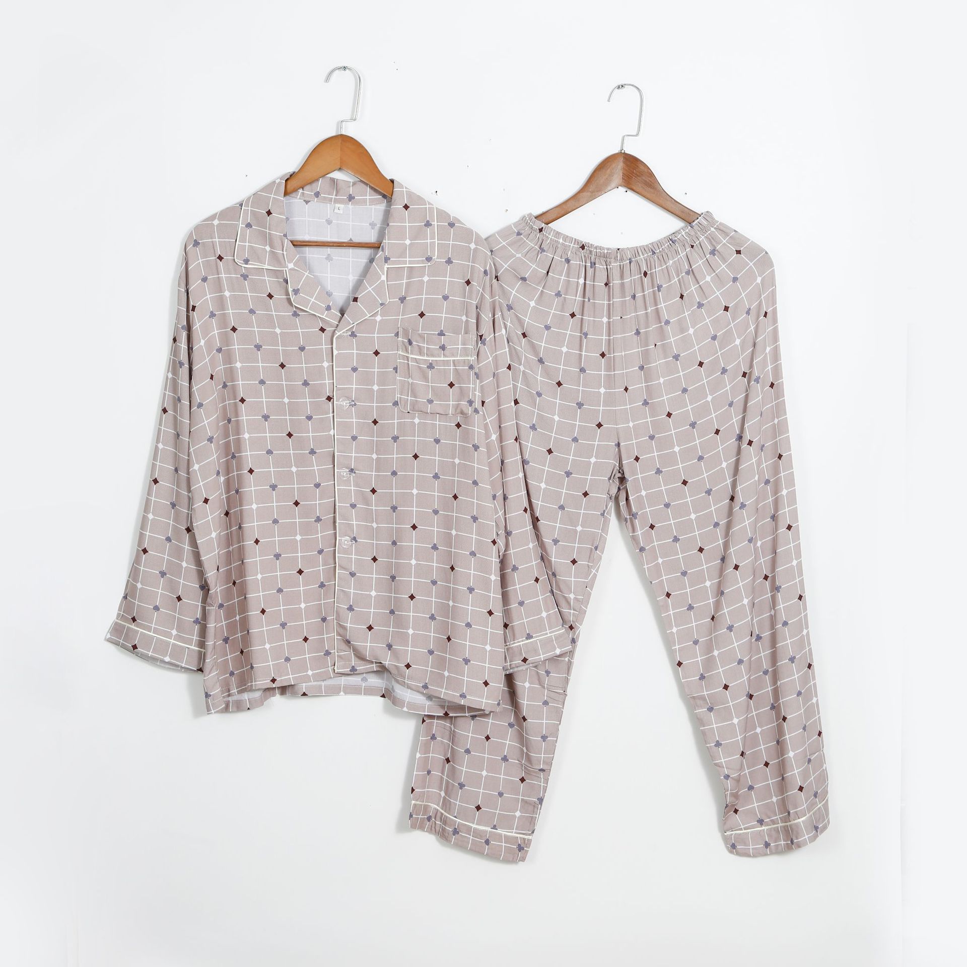 남성 가디건 긴팔 40수 면 실크 잠옷 봄, 가을 시원한 홈웨어 라펠 투피스 제조업체 공급 도매스토어 가기