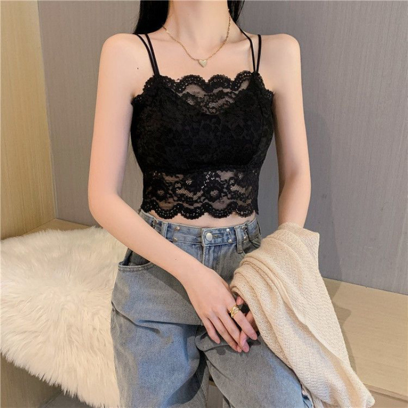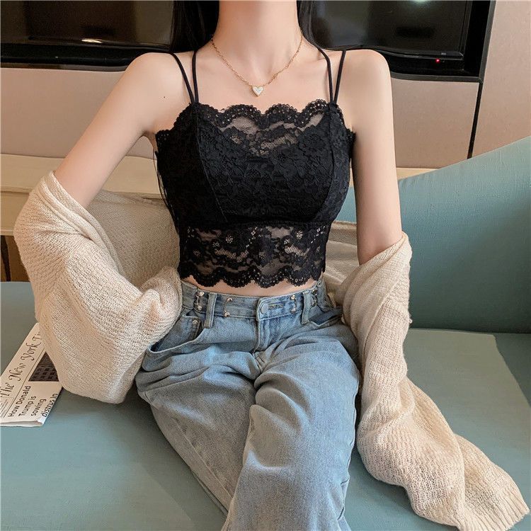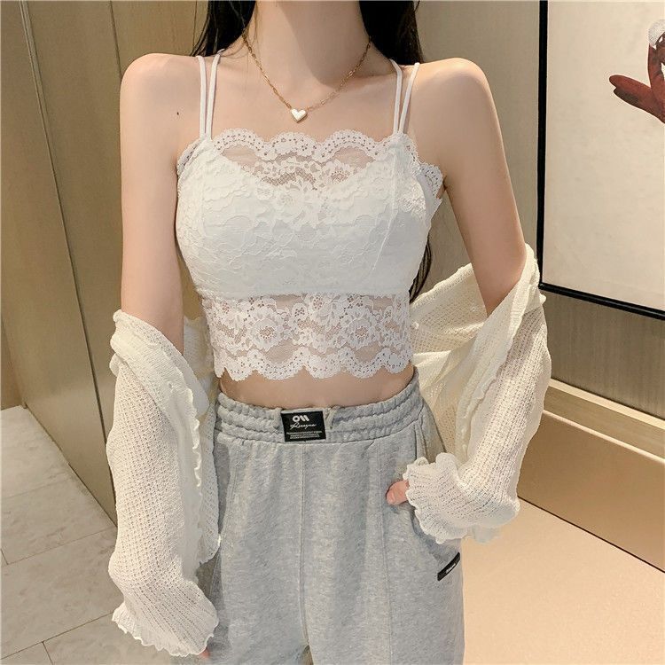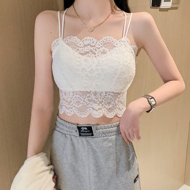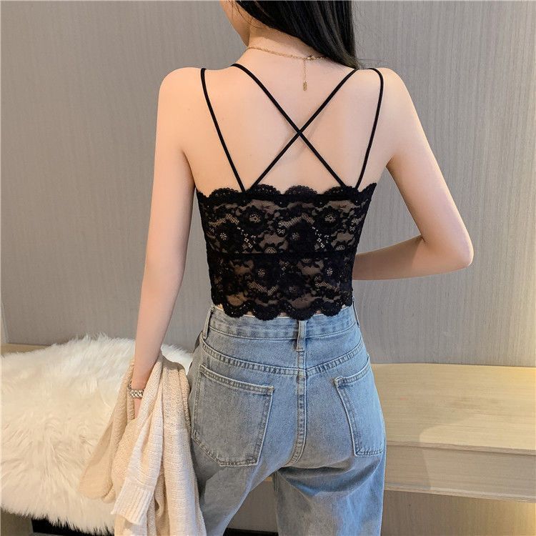 여성용 레이스 아름다운 등 캐미솔 여름 아우터웨어 내부 패딩 브라 일체형 속옷 2023 새로운 스타일 베이스스토어 가기