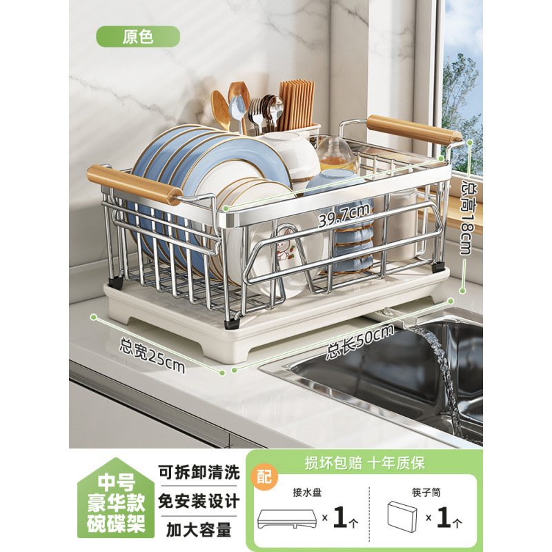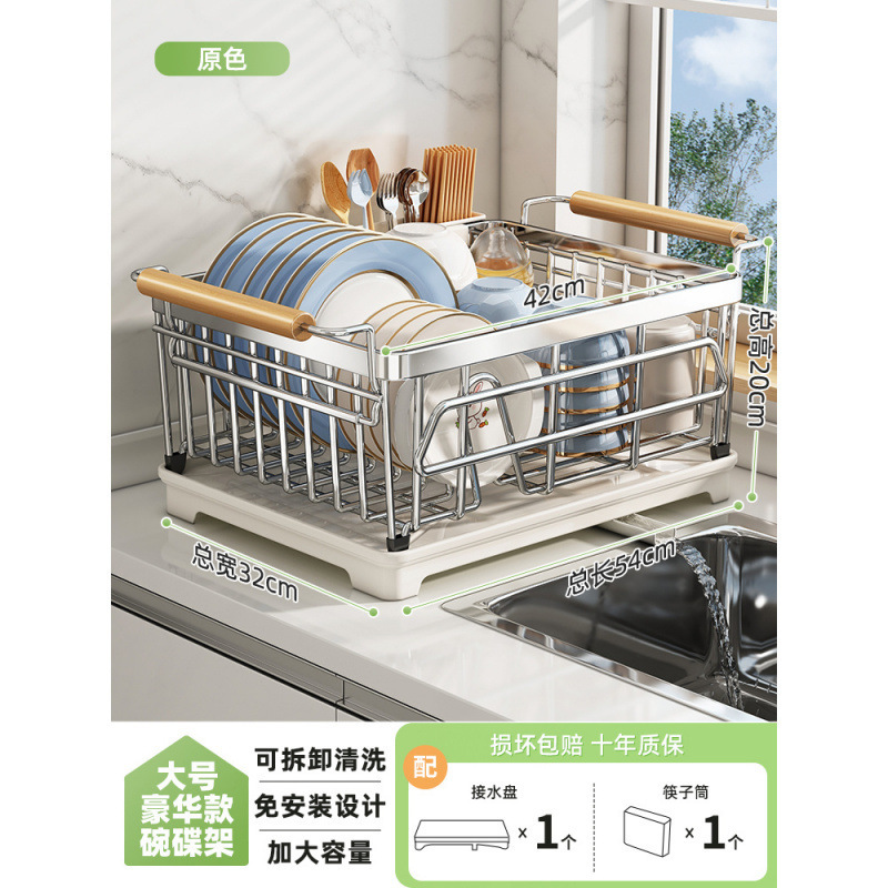 • 스테인리스 그릇바구니 + 회전배수구 [녹방지] - 304 스테인리스 오리지널 컬러 대형 + 젓가락통 [플래그십 모델 추천]