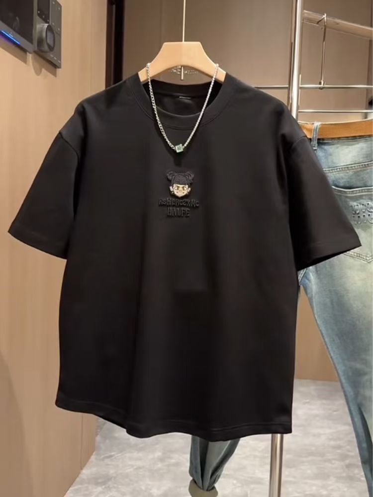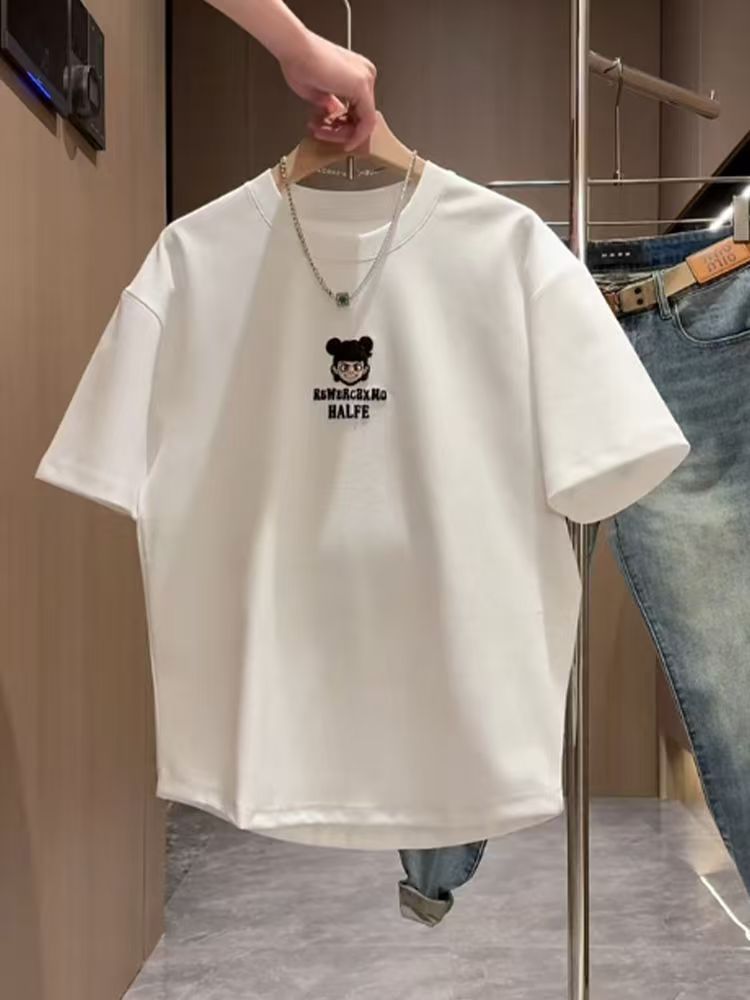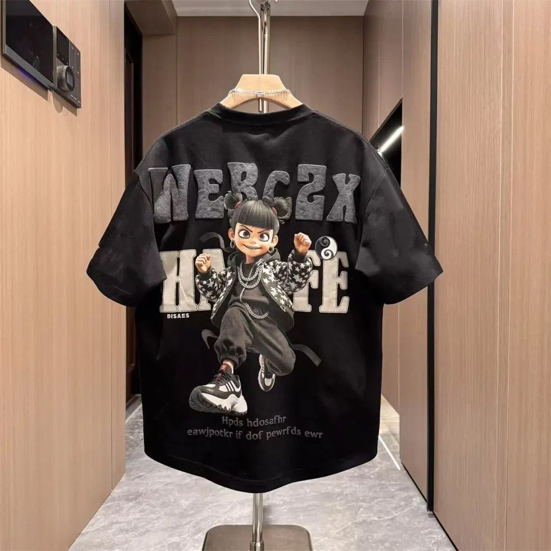 어린이 반팔 2025 뉴 여름 Nezha 프린트 루즈 캐주얼 반소매 티셔츠 남성 패션 반팔 탑스토어 가기
