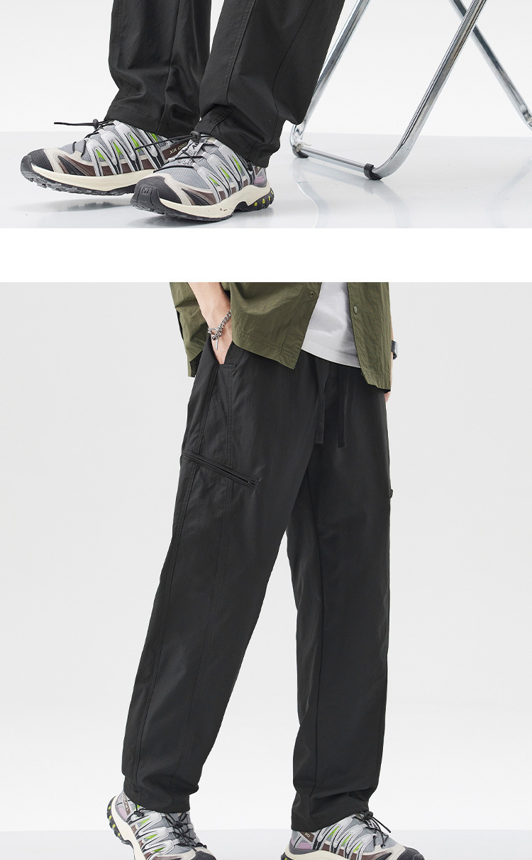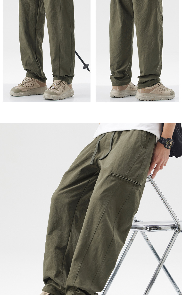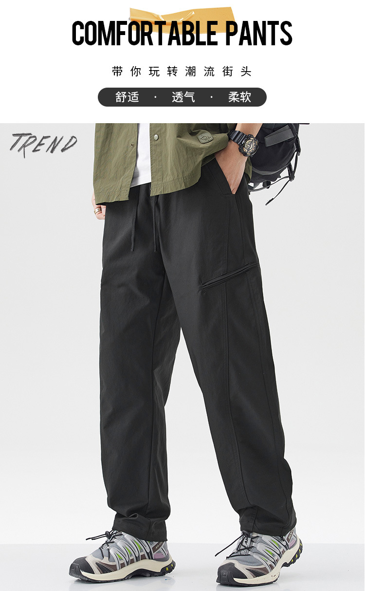 밍거 | 아메리칸 스타일 바지 드로스트링 디자인 워크웨어 얇은 남성용 루즈 스트레이트 스포츠 속건 캐주얼 바지스토어 가기