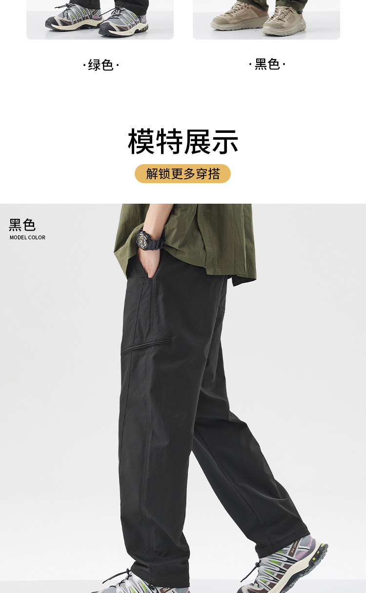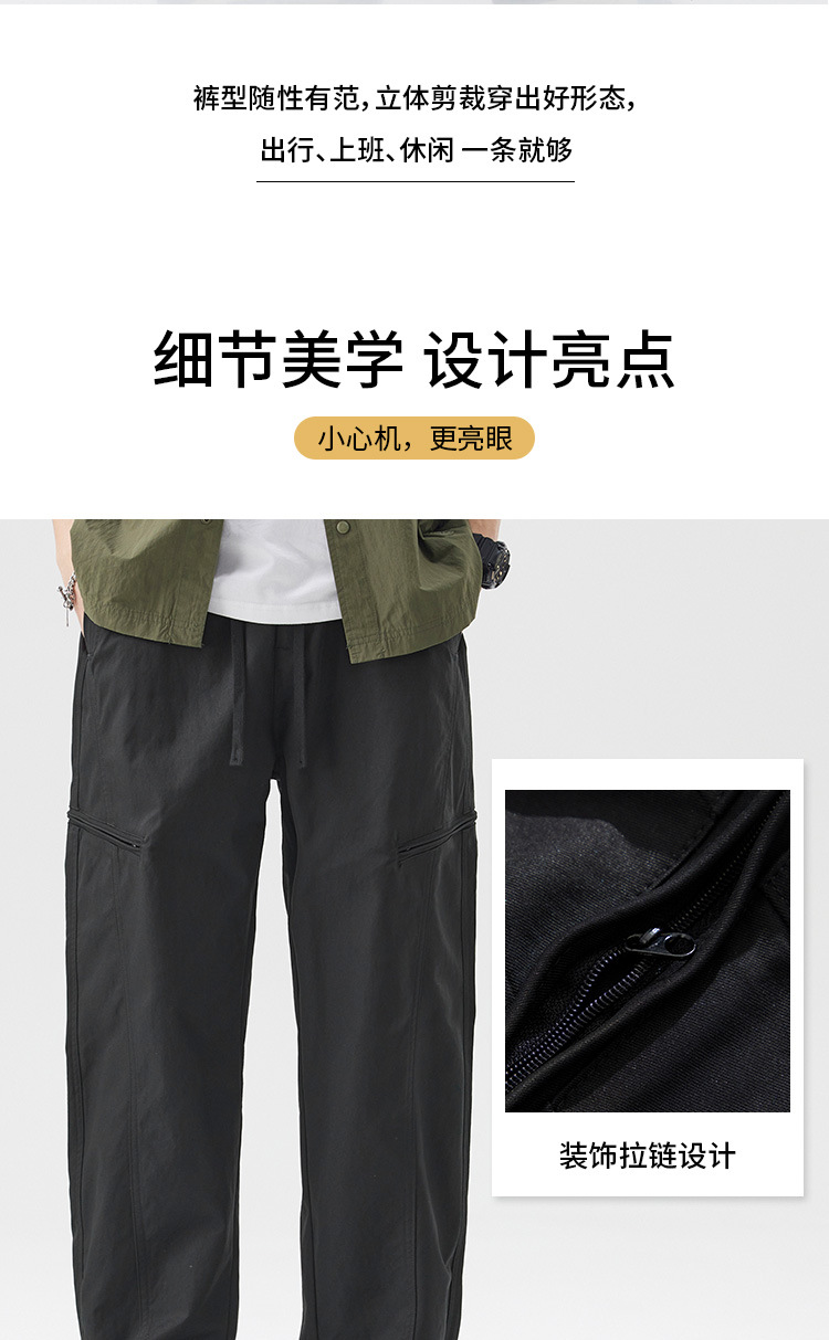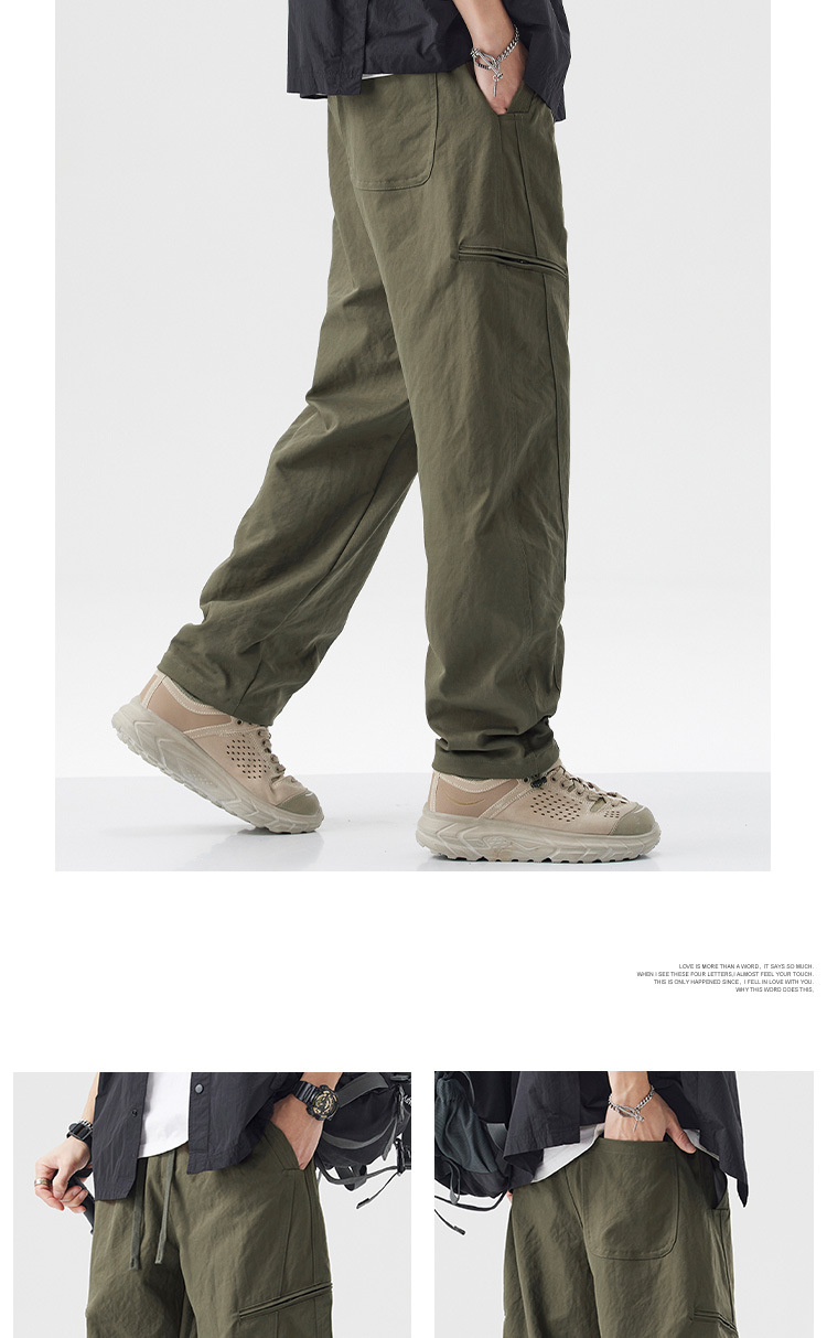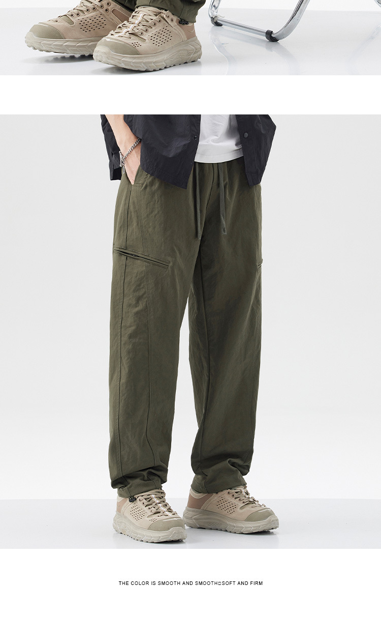 밍거 | 아메리칸 스타일 바지 드로스트링 디자인 워크웨어 얇은 남성용 루즈 스트레이트 스포츠 속건 캐주얼 바지스토어 가기