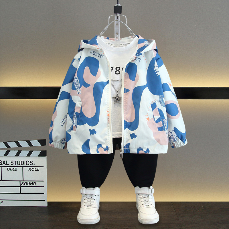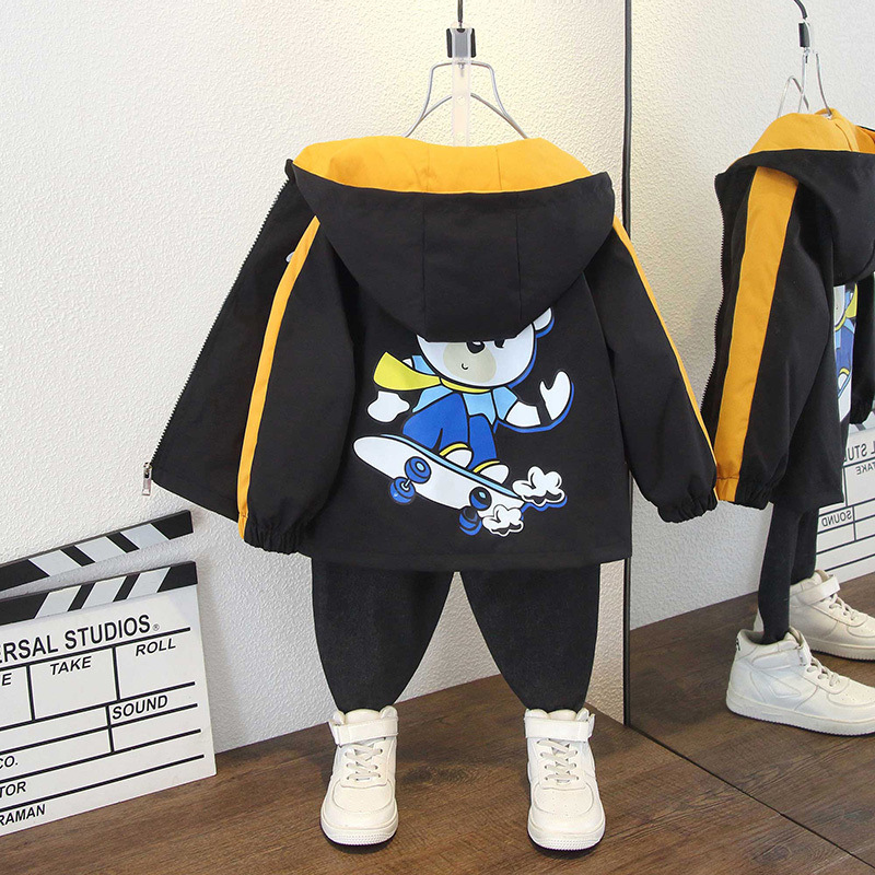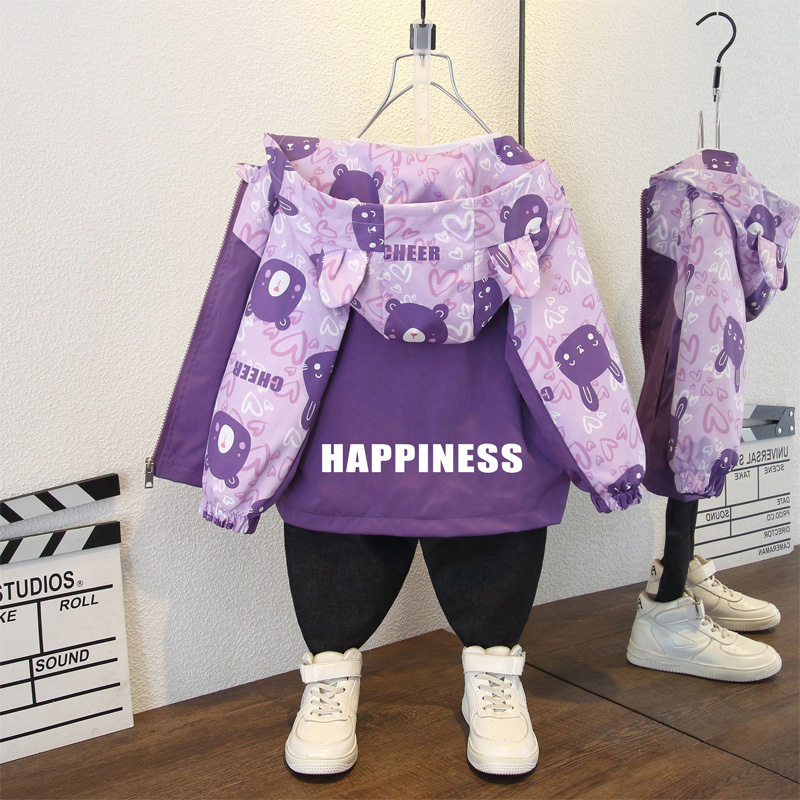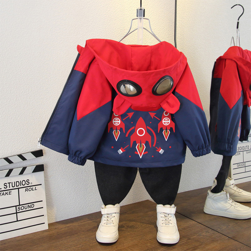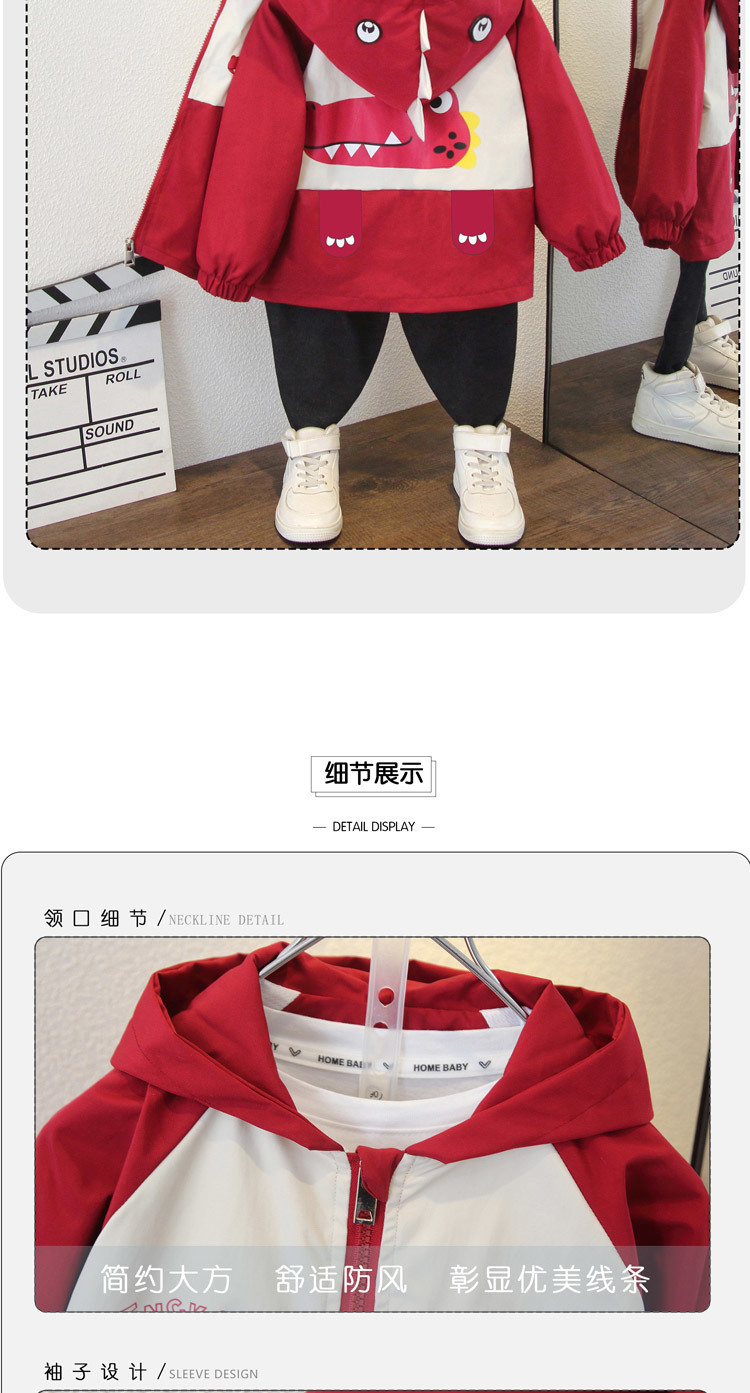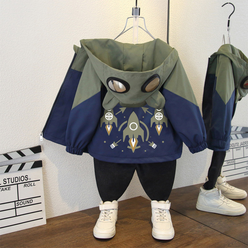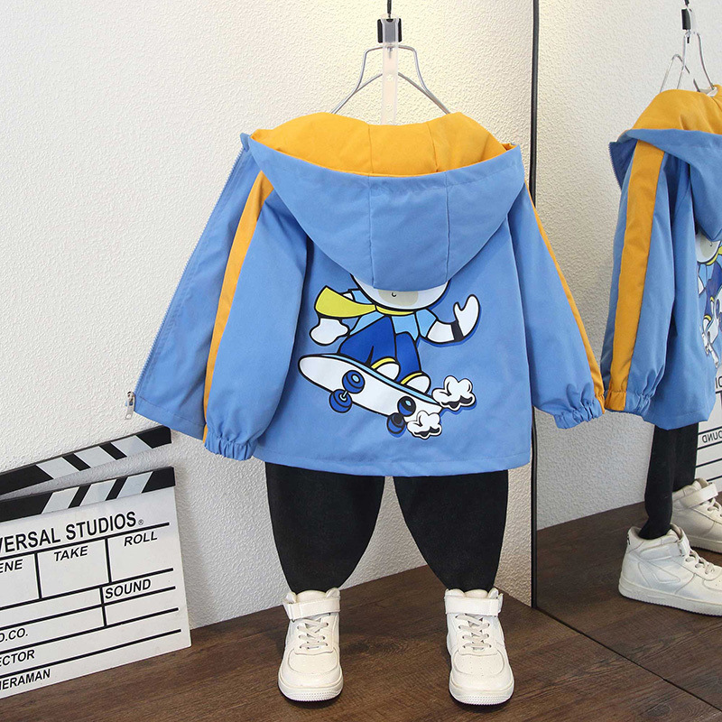 중대형 아동용 남아용 봄 긴팔 재킷, 여아용 봄 얇은 패션 대비 색상 만화 후드 윈드 브레이커 트렌디스토어 가기