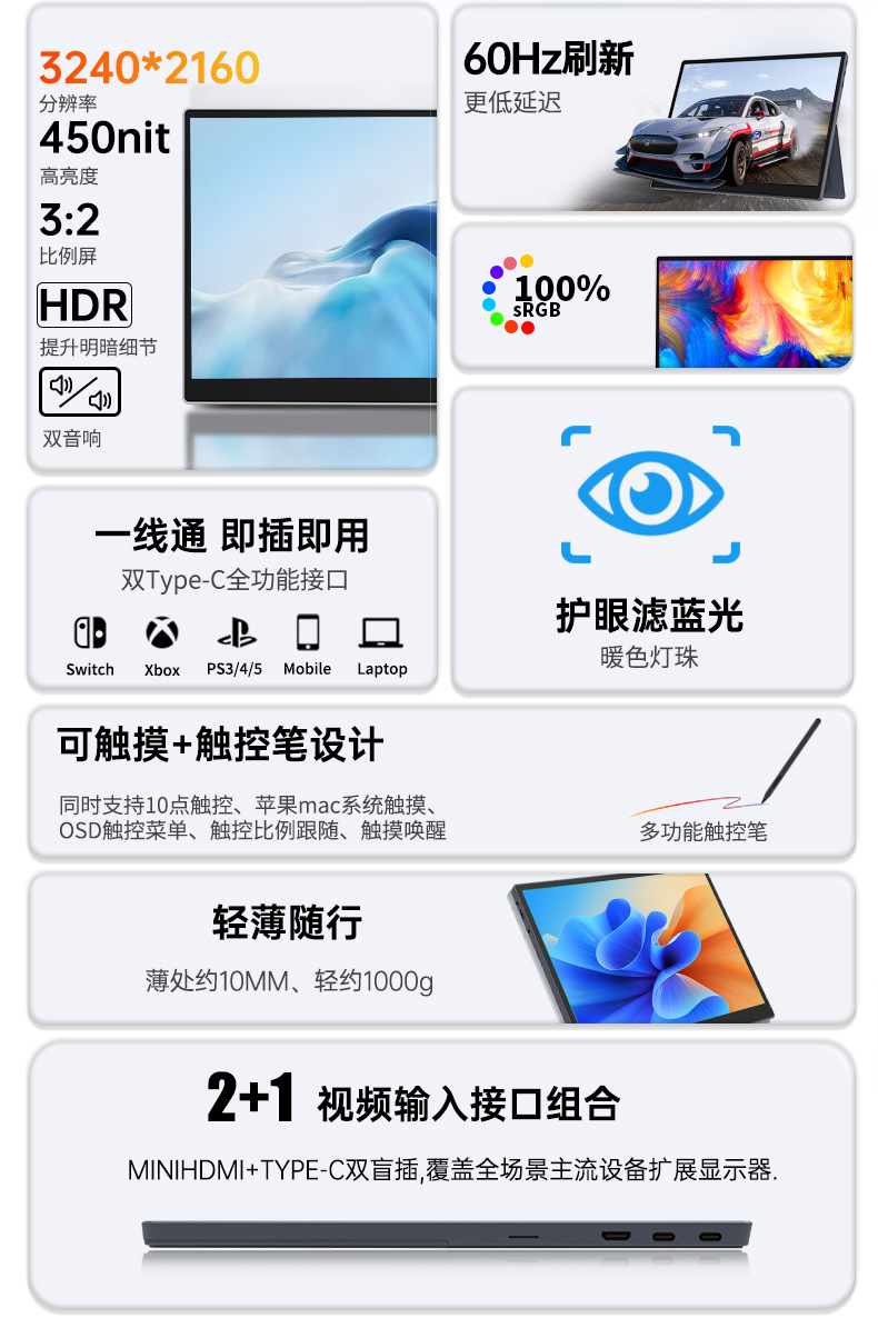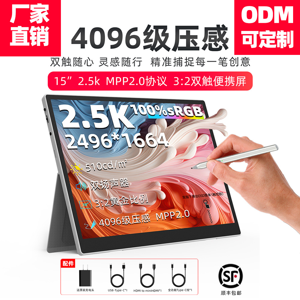 15인치 2.5K 페인팅 휴대용 모니터 4096 레벨 압력 감지 노트북 PS5 외부 화면 터치 IPS 스크린