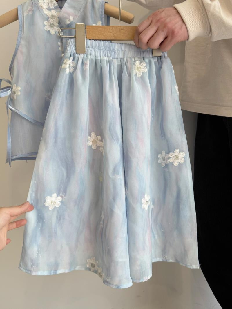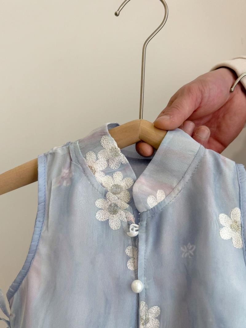 ✔️ 新中式改良设计,打破汉服壁垒再创新,无袖对襟上衣+阔腿长裤,小公主日常可穿