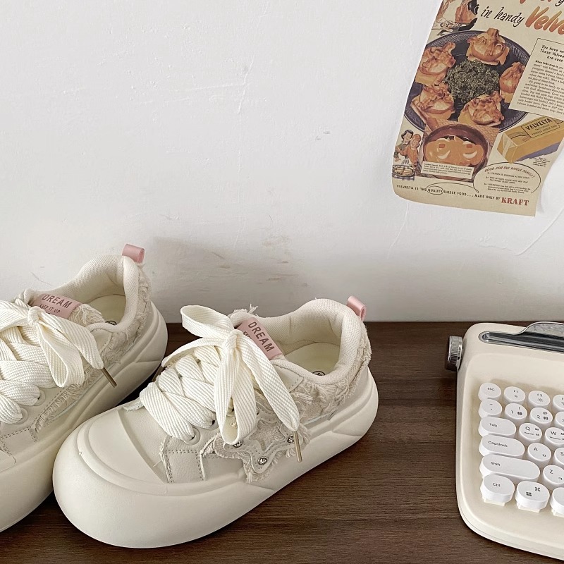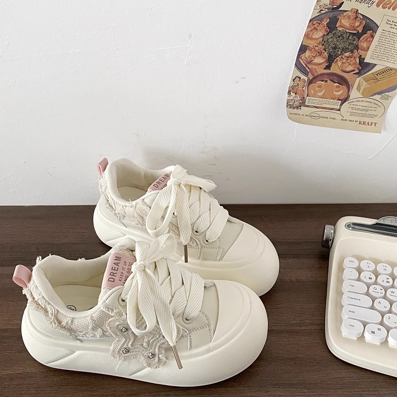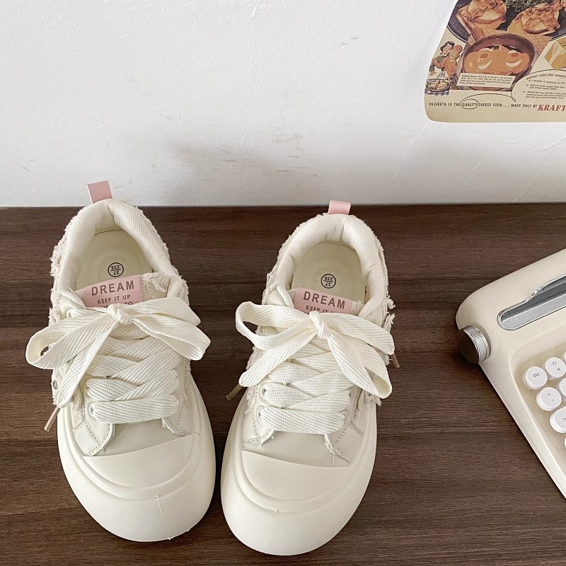 여성용 두꺼운 밑창 운동화 2025 신작 봄, 가을 흰색 신발 틈새 시장 비 충돌 다용도 캔버스 신발 빵 신발스토어 가기