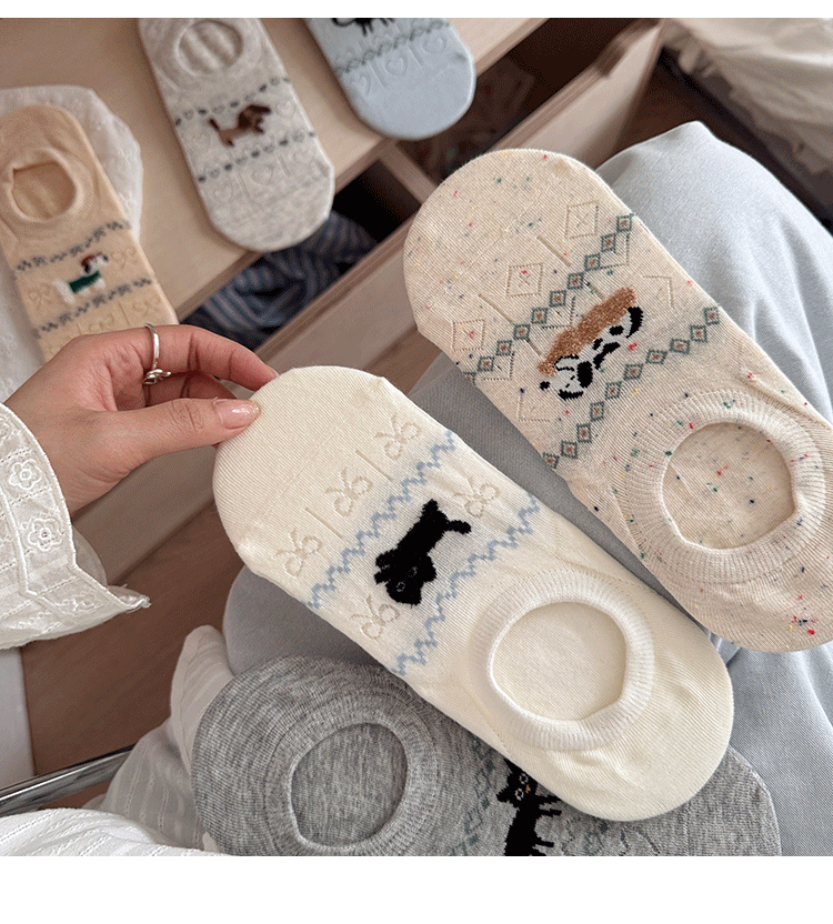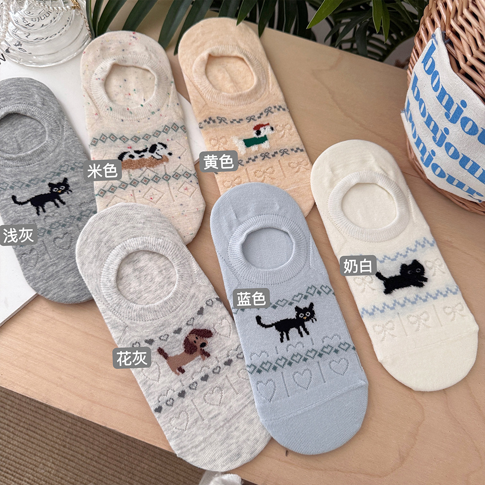 페어 아일랜드 요소 "만화 사랑 활 뼈없는 보트 양말 여성 얕은 입 얇은 귀여운 보이지 않는 면 양말스토어 가기